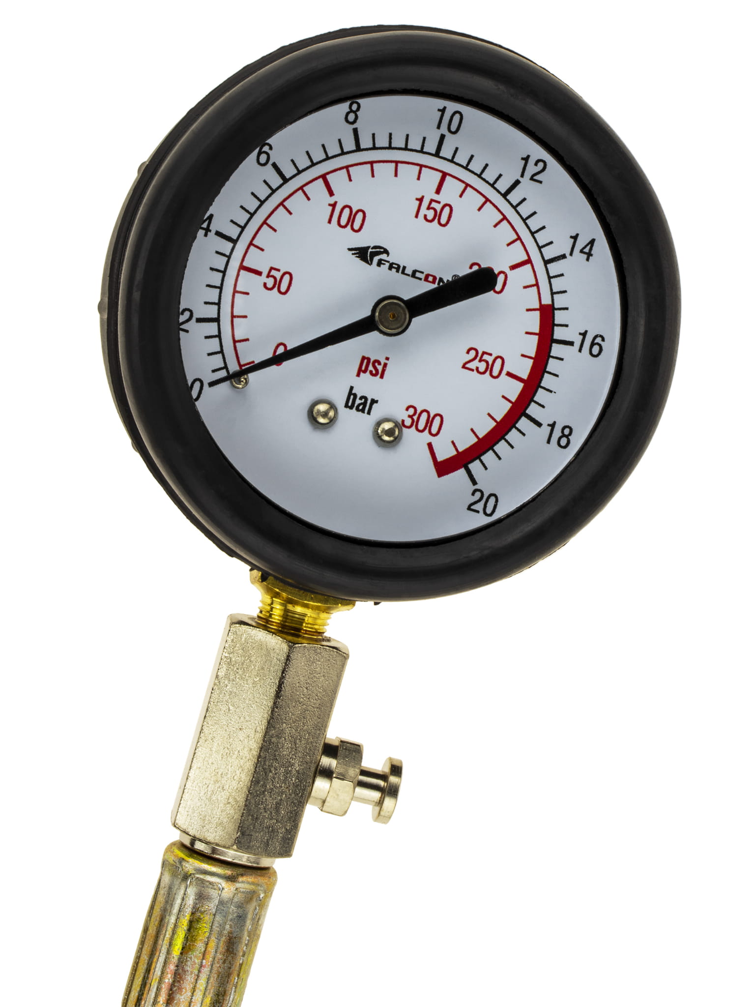 Лічильник тиску стиснення до 20 бар. Аналоговий манометр з контрольним та зливним клапаном із шкалою 0-20BAR (0-300PSI). Гнучкий гумовий шланг прибл. 22,5 см завдовжки. Жорсткий металевий наконечник, закінчений гумовою герметичною герметичною розеткою, призначена для вимірювання з ручним тиском. 2 різьбові наконечники - M14 і M18 - Один постійно прикріплений до змії. Поради щодо вимірювання можна легко та зручно замінити завдяки швидкому зв'язку.