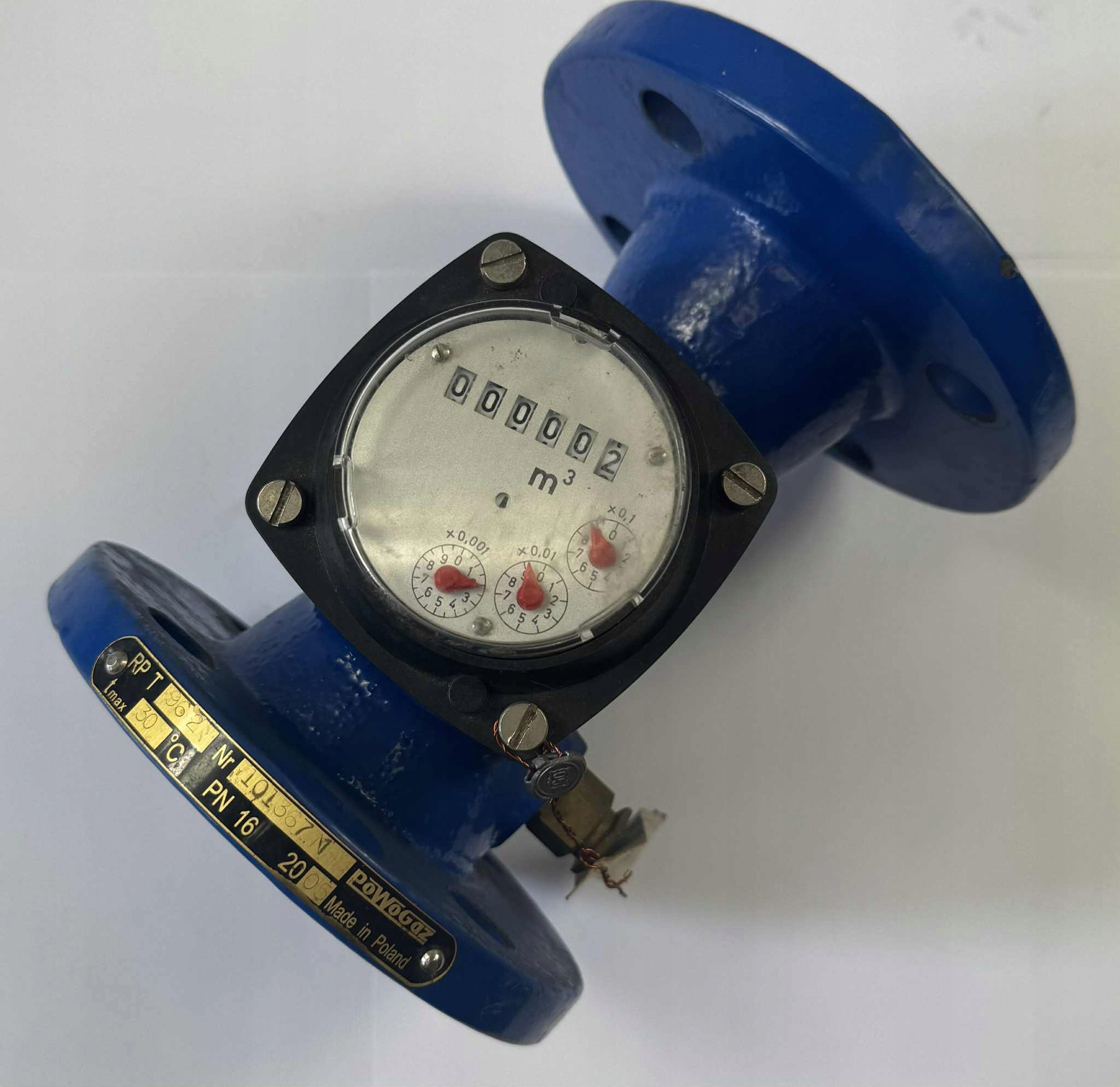 Лічильник води Powogaz MZ 50 (RPT962, № 101667) — промисловий гвинтовий водомір, призначений для вимірювання води в системах водопостачання. Характеризується міцною конструкцією, високою стійкістю до робочого тиску та точним вимірювальним механізмом, що забезпечує точність у робочих умовах до 50°C та PN 16.
