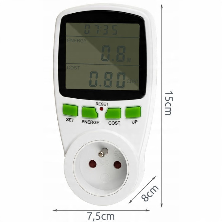 Цифровий ватметр, який допомагає обчислювати споживання електроенергії пристроями, підключеними до електричної мережі 230 В. Прилад вимірює енергоспоживання і дозволяє розрахувати вартість спожитої енергії. За допомогою нього можна підрахувати, скільки енергії споживає будь-який електроприлад, і швидко розрахувати вартість його роботи.