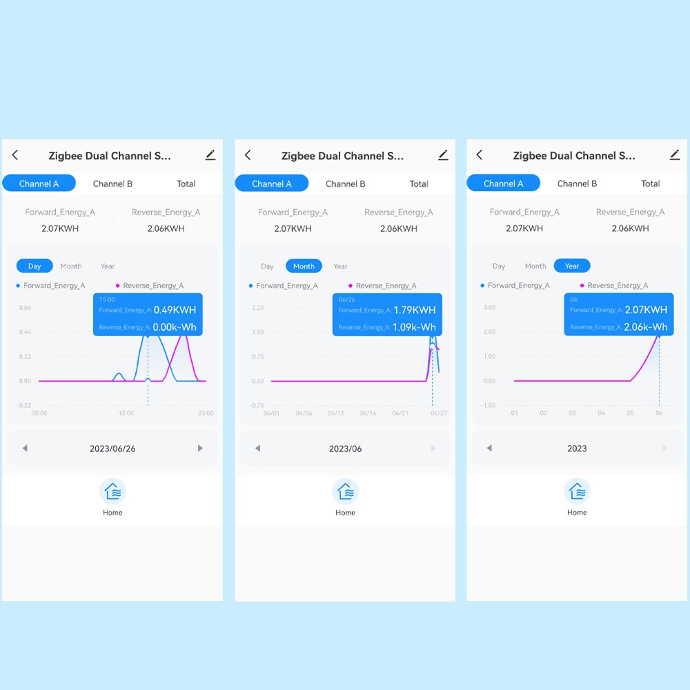 Статистика потужності: APP відображає щоденні, місячні та річні підсумкові показники зворотного та прямого каналів. Відображає відсоток спожитої енергії для ефективного використання енергії.