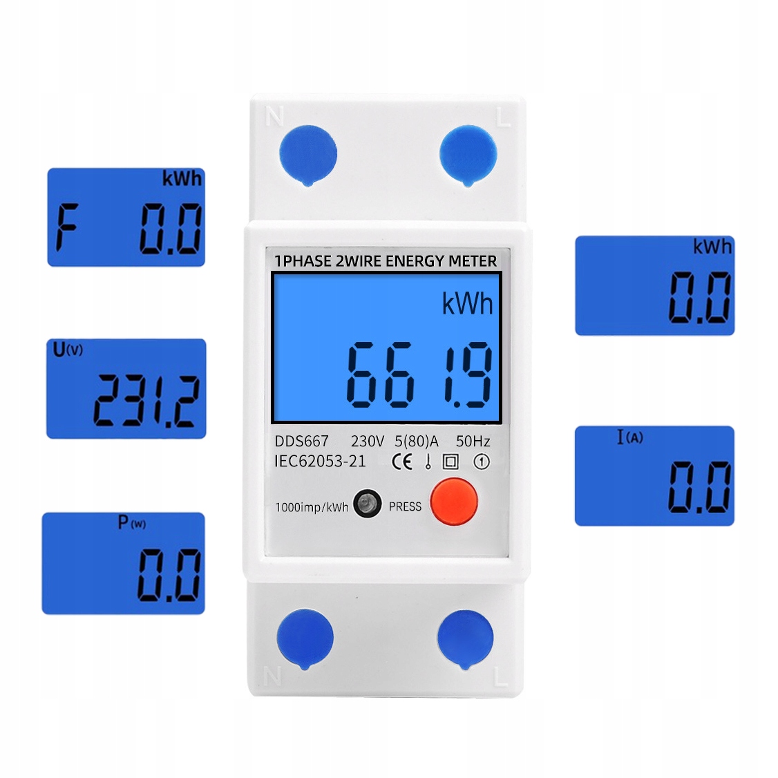 LICZNIK JEDNOFAZOWY DIN ENERGII LCD PRĄDU WATOMIERZ 5(80)A szynie KWh