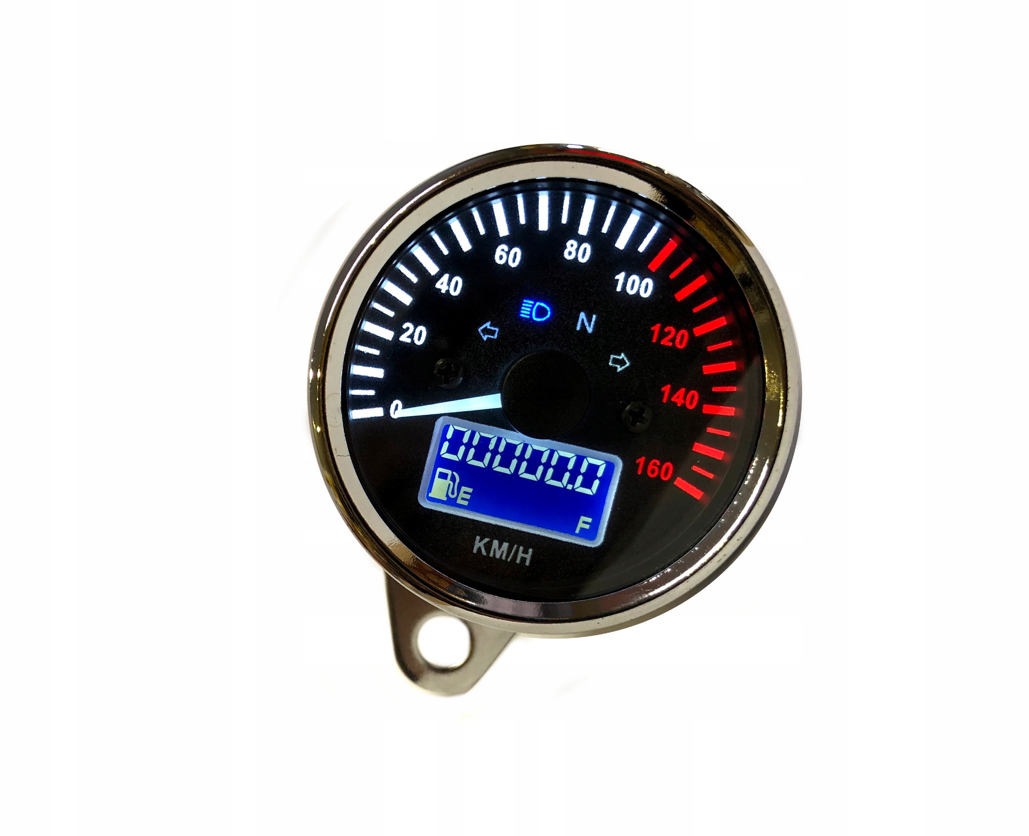 LICZNIK PRĘDKOŚCIOMIERZ UNIWERSALNY ZEGAR ANALOGOWY TUNING CAFE RACER CHROM