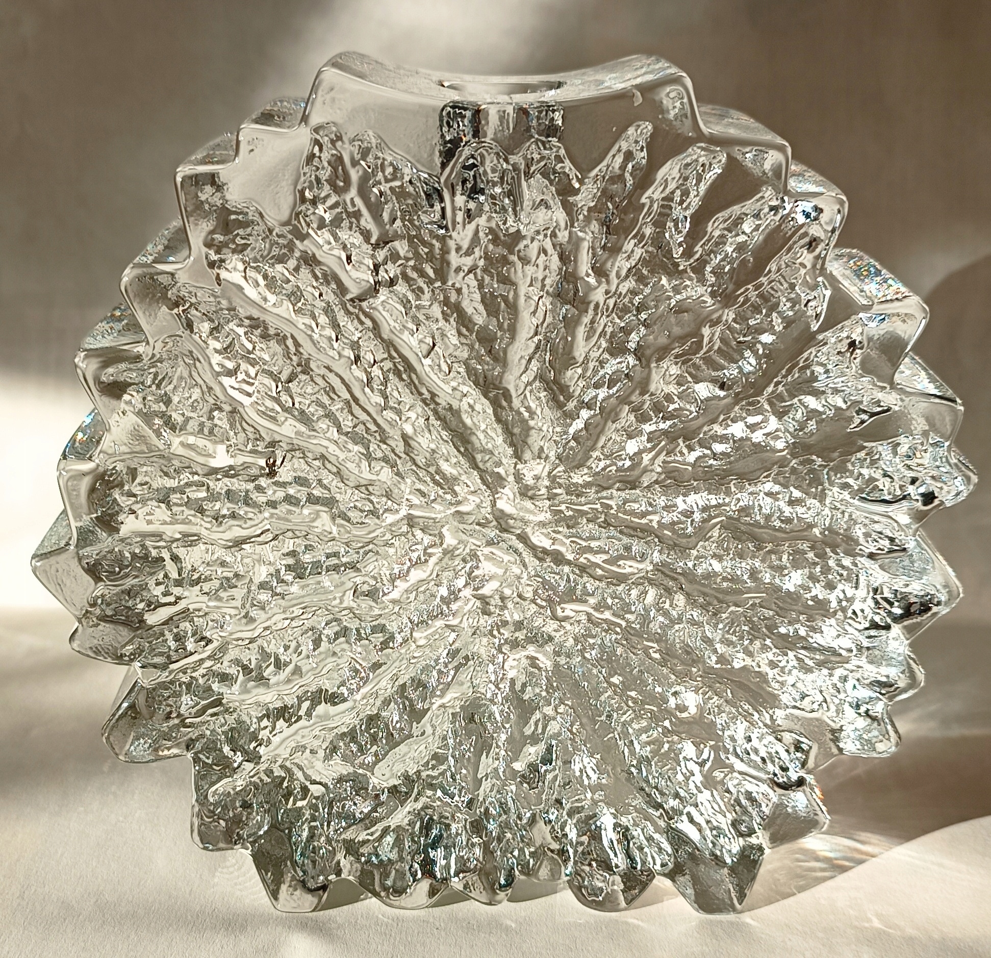 Гарний важкий свічник, розроблений Віллі Йоханссоном для Hadeland Glassverk у 1970-х роках. Красива і незвичайна прикраса для дому. Дуже важкий. Висота 14 см, ширина 15 см. Чудово відбиває світло. В дуже хорошому стані. Фотографії є невід'ємною частиною опису.