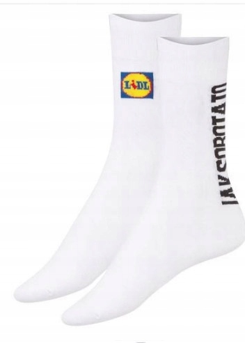 - на на спині написи: на лівому носку «ЯК СУБОТА»; на правому носку: "ТІЛЬКИ ДЛЯ LIDL"