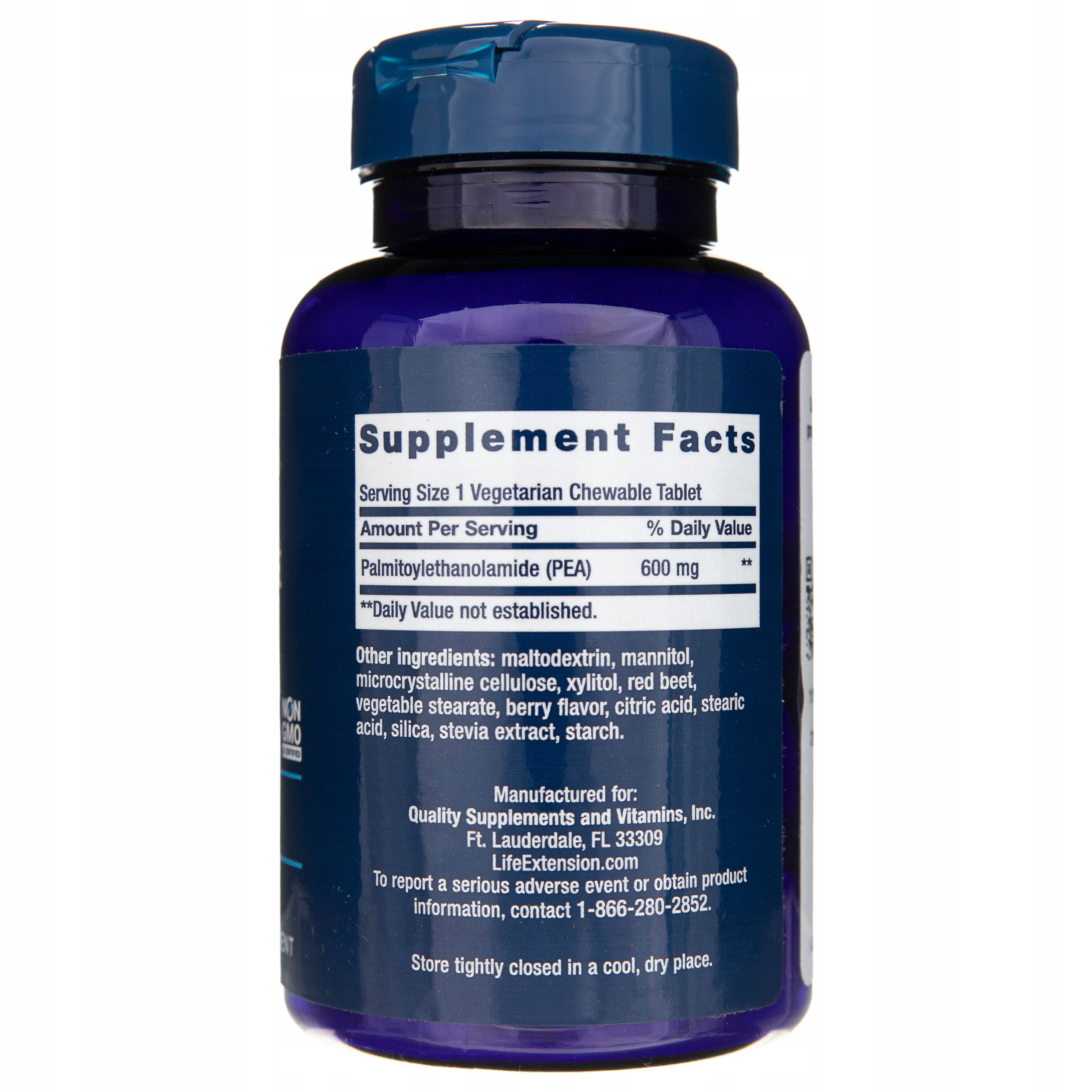 Discomfort Relief by Life Extension – це дієтична добавка у формі таблеток для розсмоктування з приємним ягідним смаком, що містить пальмітоілетаноламід (PEA).
