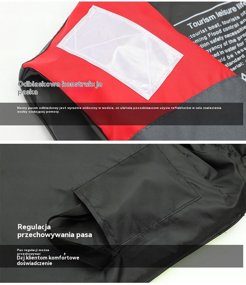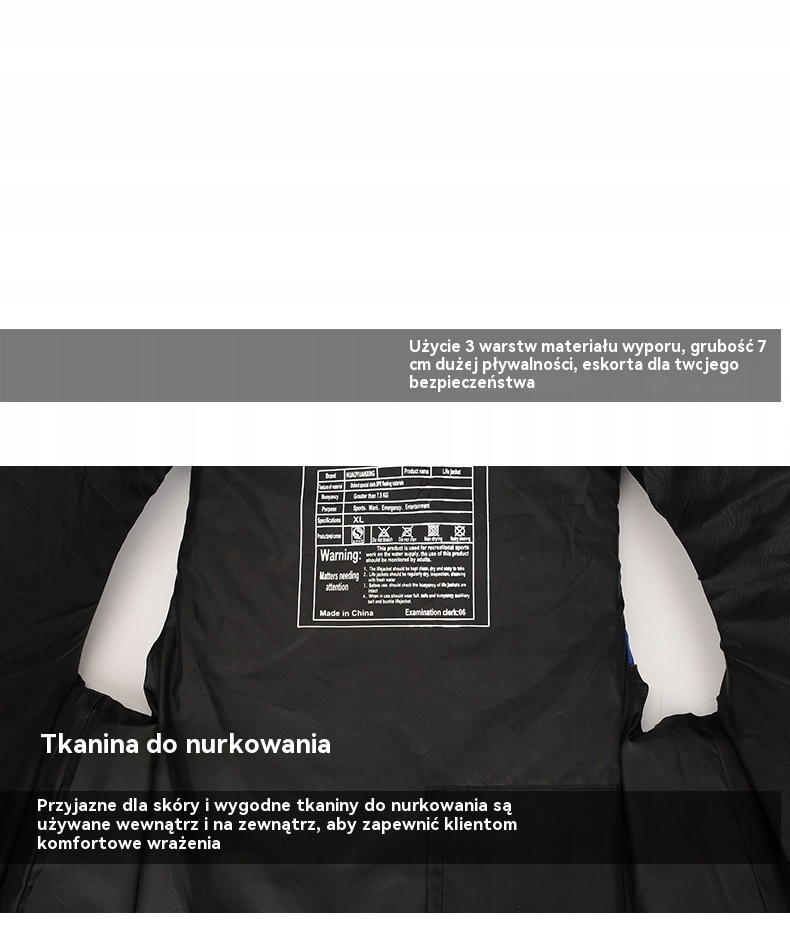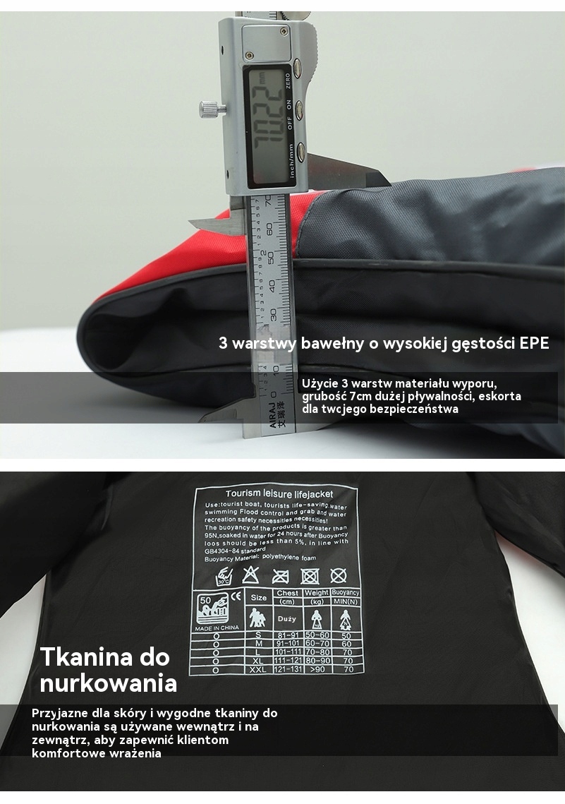 Розмір: один розмір підходить для більшості дорослих, придатних для дорослих вагою 50-110 кг специфікації: 60x55 см. Обсяг застосування: дії, пов’язані з веселим, такі як боротьба з повені та допомога у випадку катастроф, заощадження життя кораблів, морських робіт, сплавлення на свіжому повітрі, плавання тощо, відповідно до сертифіката ЄС ПН-EN ISO 12402-4, має СЕ, випущений польським інститутом польського корабля (PRS) -антифікаційного інституції. Сертифікат забезпечує визнання жилета як рятувальника всіма службами контролю, знайденими на водних маршрутах. Житло завжди повинен бути обраний для ваги користувача при покупці. Його сучасний дизайн та дуже великий асортимент регулювання талії спричиняє, що він ідеально відповідатиме всім людям даної ваги. Таблиця детальних розмірів нижче!