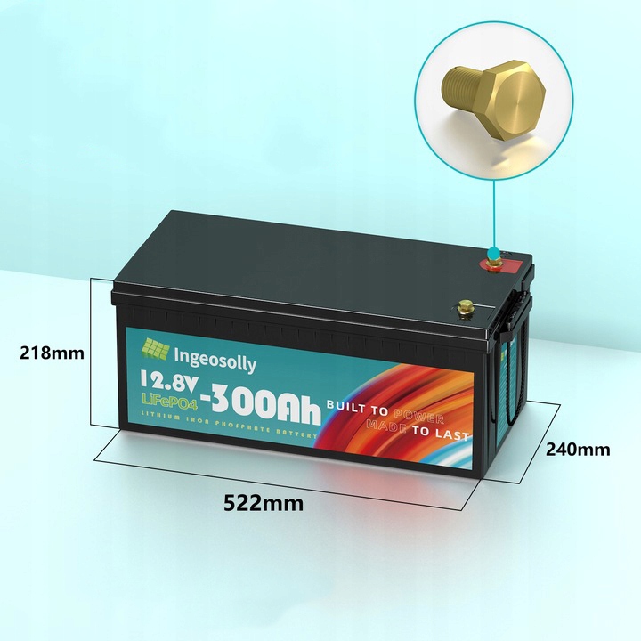 - Більш легка вага - акумулятор LifePO4 300AH важить приблизно на 18 кг менше, ніж його аналог у кислотній технології та пропонує 100% корисну здатність і адаптується до циклічної роботи та глибокого розряду. Життєвий час - понад 4000 циклів, зберігаючи 80% номінальної потужності, таким чином гарантуючи понад 10 років роботи та завдяки низькому фактору самовироблення.