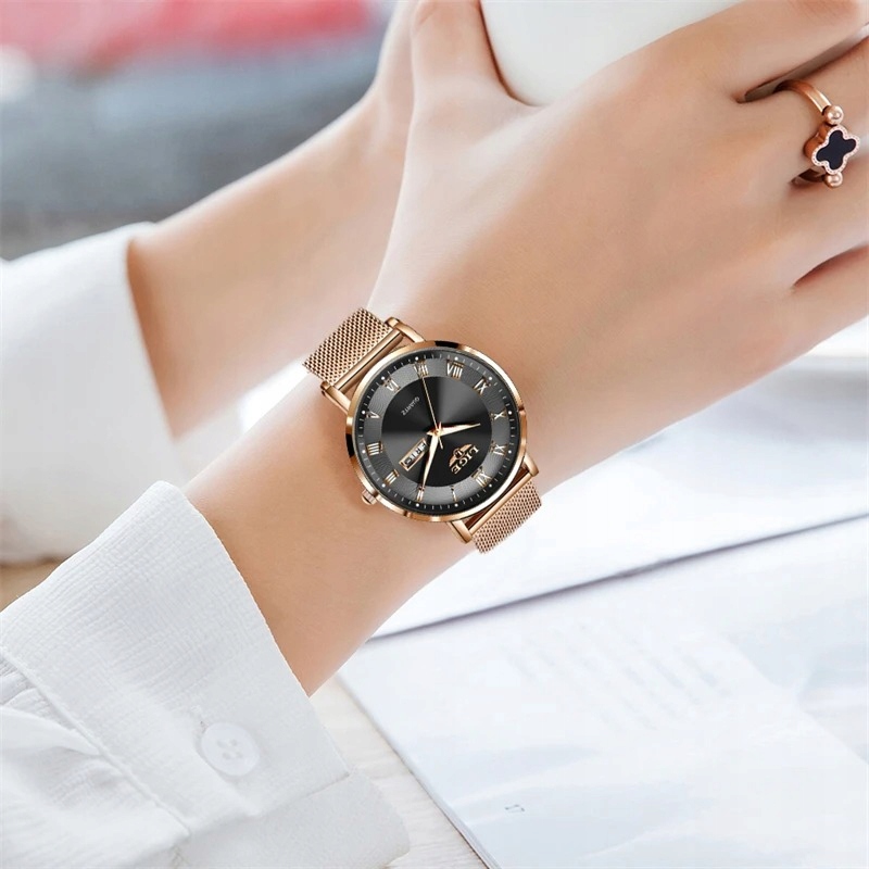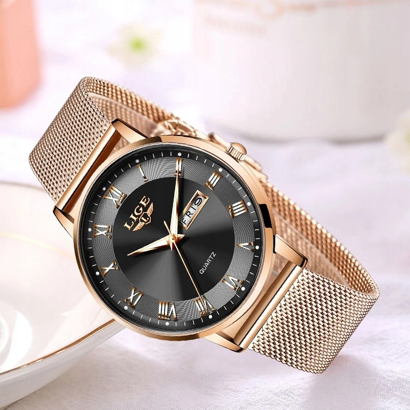 Жіночі брекети LIGE для годинника для годинника Simple Simple водонепроникний рух рожевої золотої нержавіючої сталі