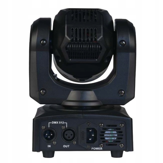 LIGHT4ME 30 SPOT RING - це невелика, компактна та відносно міні світлодіодна рухома головка, яка пропонує досить багато можливостей для створення освітлення . Пристрій оснащений потужним 30-ватним білим світлодіодом і світловим кільцем з 12 діодів RGB, встановленим навколо основної лінзи. Крім того, обладнання має диск з 7 кольоровими фільтрами, які забарвлюють світло, і диск гобо з 7 сучасними візерунками формування променя. На задній панелі є роз'єм живлення та вхід і вихід DMX. Спереду встановлена панель управління, що складається з цифрового LED-дисплея і чотирьох кнопок. За допомогою них ми можемо переміщатися по меню, змінювати налаштування та вибирати один із чотирьох режимів роботи пристрою:
