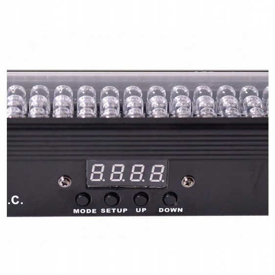 Технічні характеристики: Колір корпусу: ЧОРНИЙ Кількість секцій: 16 Матеріал корпусу: алюміній Джерело живлення: AC 85-265V, 50/60Hz Запобіжник: 1A/250V Потужність: 36 Вт Джерело світла: 240 світлодіодів (R-96, G-96, B-48) Кут променя: 40° Вхід і вихід DMX: 3-контактні роз'єми XLR (мама, тато) Розетки живлення: IEC I/O Мікрофон: вбудований Робоче місце: в приміщенні Робоча температура: -20°C ~ 45°C Вологість навколишнього середовища: 0 – 90% Дисплей: цифровий LED Режими роботи: статичний колір, авто, звук, головний/підлеглий, DMX Кількість каналів DMX: 2/3/4/8/14/24/48 Розміри: 1070 x 65 x 88 мм Вага: 2,6 кг У комплекті: шнур живлення, ніжки, інструкція користувача Оригінальна упаковка та начинка.
