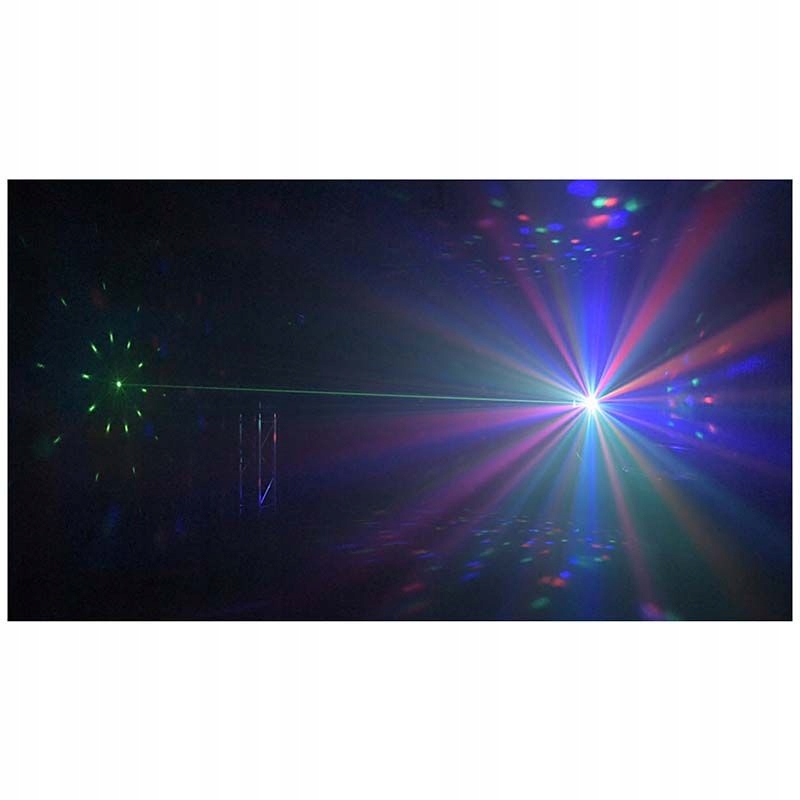 Компоненти рефлектора укладені в міцний корпус, оснащений зручним монтажним кронштейном. У центральній частині передньої стінки корпусу розташована система PAR wash effect, що складається з восьми світлодіодів по 1 Вт, що працюють насиченими і яскравими кольорами в палітрі RGBY (червоний, зелений, синій, жовтий). Діоди розташовані по колу навколо двох дуже потужних лазерів - червоного і зеленого. Поруч з ним розташований проектор гобо, оснащений 8 світлодіодами потужністю 3 Вт. Вони випромінюють барвисті світлові промені в колірній палітрі RGBW (червоний, зелений, синій, білий), створюючи дивовижні візуальні ефекти. Останньою оптичною системою є ефект дербі. Його джерелом світла є два потужних 10-ватних світлодіода, що працюють у колірній палітрі RGBW.
