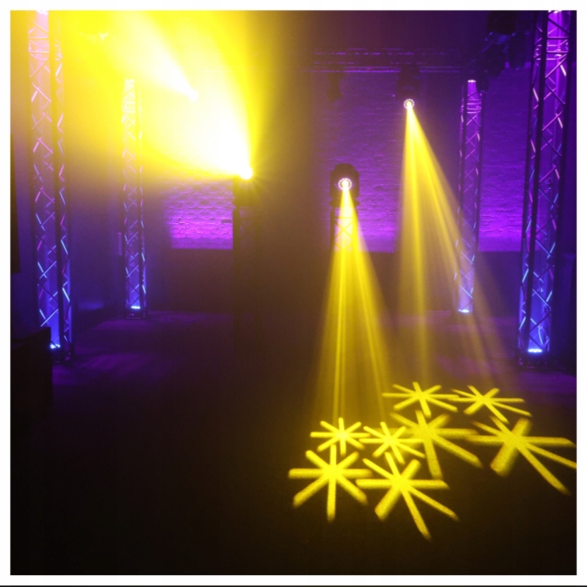 - Статичний Gobo : 9 конструкцій + відкритих, Gobo Shake, двоповерховий прокрутка Gobo