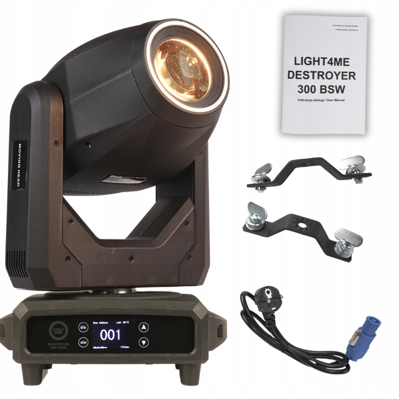 Електронні компоненти освітлювальних пристроїв Light4me 300 BSW були укладені в суцільний корпус у чорному елегантному кольорі, оснащеному ручками для перенесення ✅. Набір також включає дві ручки для полегшення складання пристрою на фермі та освітлювальних пандусів ✅. Рухова головка має вісім кольорових, два гобі-щит-статичні та обертові, що є загалом 16 візерунків формування променя, а також 4-кочовий обертовий радіус розпилювача. Завдяки зворотній функції орієнтації дисплея, головний оператор може легко прочитати інформацію або змінювати параметри, коли пристрій знаходиться на високій висоті або у важкому -дорічному місці. Крім того, пристрій оснащений можливістю підтримки останнього стану у випадку втрати сигналу DMX ✅! У задній частині основи є розетки живлення (включаючи так звані "дайте", що дозволяє передачу напруги безпосередньо від пристрою до пристрою) та 3- та 5-контактні входи XLR та виводи для управління освітленням етапу за допомогою протоколу DMX ✅. На передній частині є панель управління, що складається з дотику, розбірливого РК -дисплея та 4 кнопок. За допомогою їхньої допомоги ми можемо вибрати режим світлодіодної голови, який нас цікавить:
