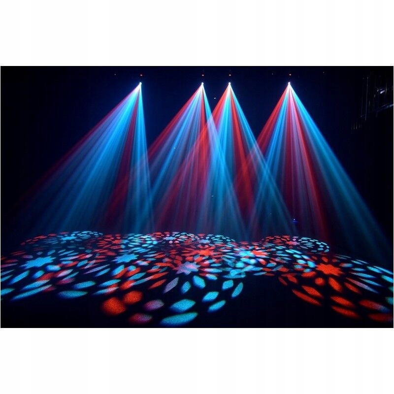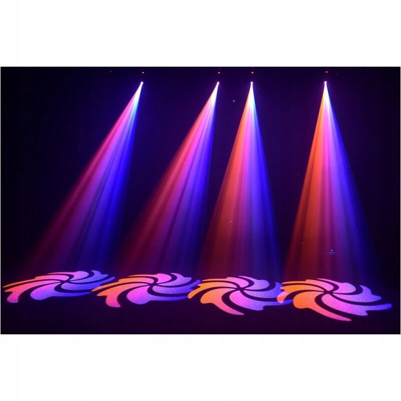Пристрій має диск із дев’ятьма металевими візерунками гобо, які працюють із кольоровим диском із вісьмома світлофільтрами. Ми можемо змішувати кольори, створюючи напівкольори. Маленький пристрій оснащено надійним і зручним ручним фокусуванням, тому ми завжди можемо бути впевнені, що ніщо не розпливеться під час перегляду. Важливо те, що пристрій має вбудовану триплечу поворотну призму, що дозволяє ще ширше використовувати цю світлодіодну головку.
