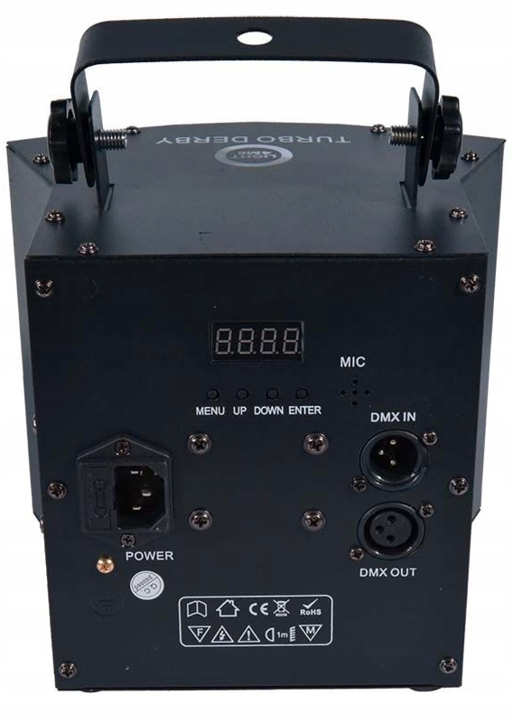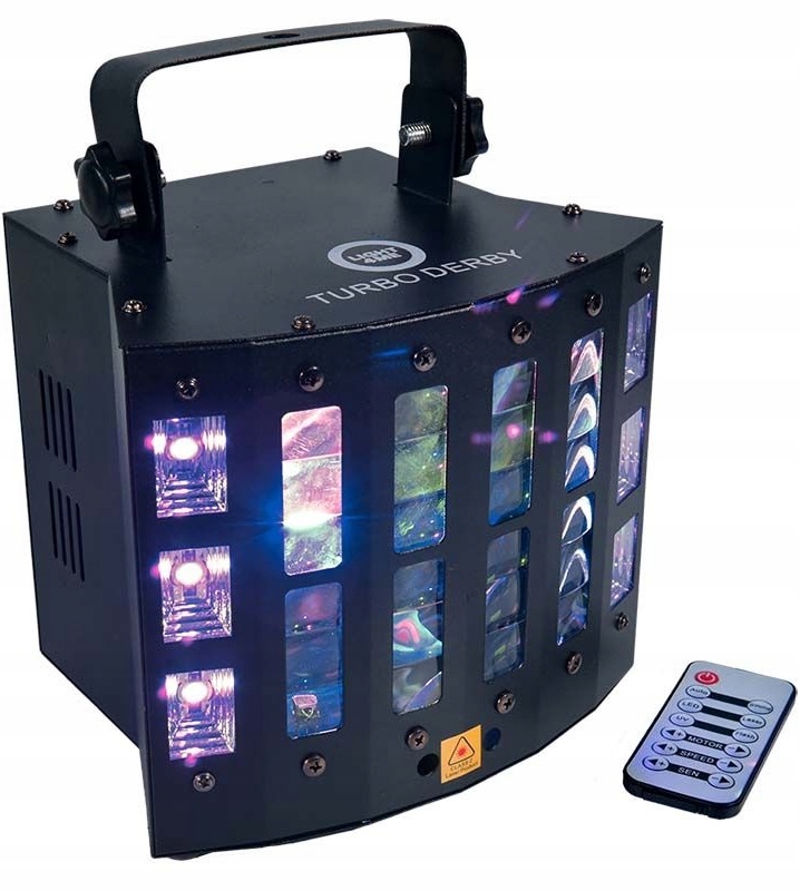 • це одна з найновіших і дешевших пропозицій популярного світлодіодного мультиефекту типу derby, тепер з можливістю керування за допомогою бездротового пульта дистанційного керування