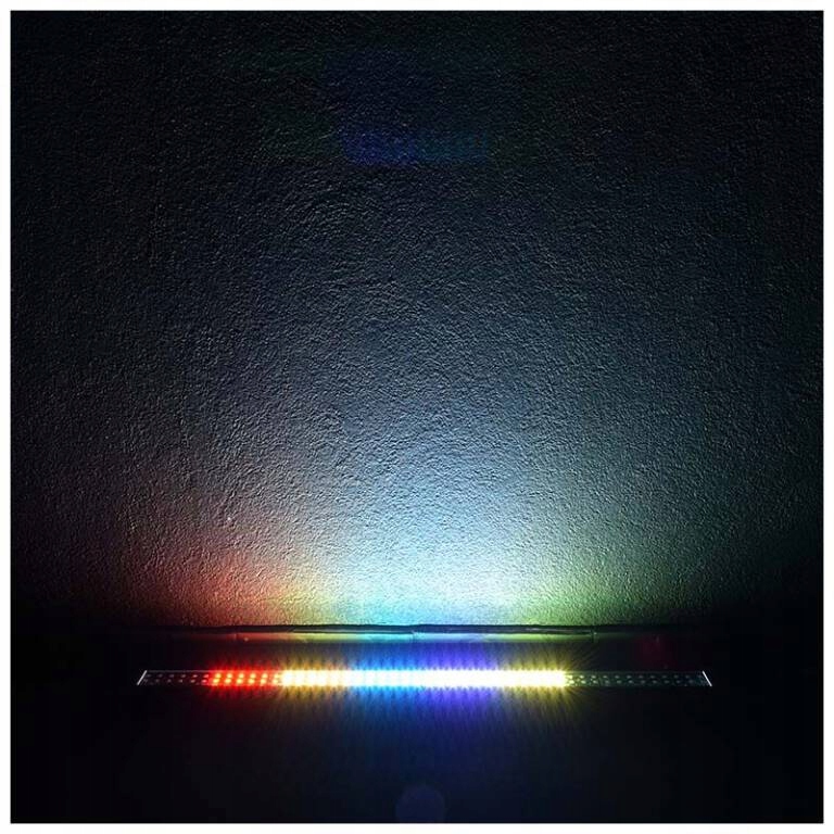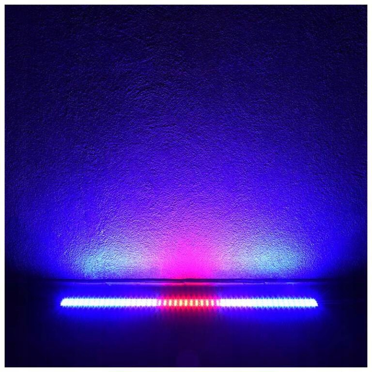 LIGHT4ME WASH BAR 144 SMD - це професійна, міцно виготовлена і в той же час легка світлодіодна стрічка, оснащена 144 SMD діодами, що працюють з світлом в колірній палітрі RGB (червоний, зелений, синій). Пристрій ідеально підходить для оформлення весільних залів світлом, елементів дизайну інтер'єру в ресторанах, готелях, пабах і на сценах для створення спеціальних світлових ефектів. Ширина світлодіодної стрічки більше 1 метра. З обох кінців прикручені ніжки, завдяки чому світлодіодна штанга може працювати в положенні стоячи. Вони також виконують роль монтажних кронштейнів, що дозволяє встановлювати піксельну панель на фермах і освітлювальних пандусах.