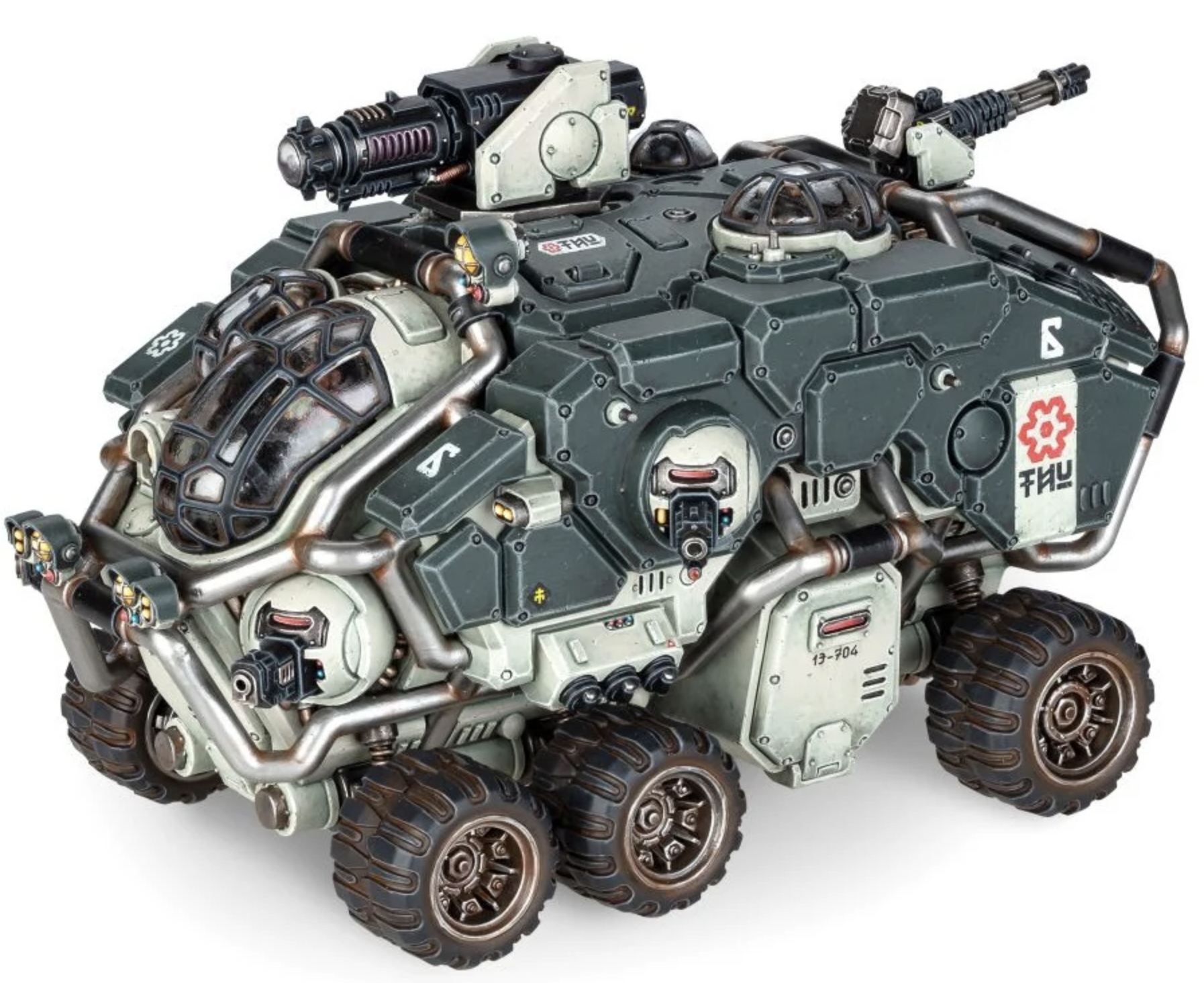 Легендарний бойовий танк і броньований транспорт Votann Lig, сухопутна фортеця Гекатон настільки ж шанована й шанована, як і могутня. Маючи жахливий арсенал важкої зброї та надзвичайно міцну броню, а також здатність вести в бій загони солдатів Кіна, це універсальний військовий ресурс і грізний оплот проти будь-якого ворога.Цей багатокомпонентний пластиковий набір складається з одного Гекатона Land Fortress, незламний важкий транспорт з потужними гарматами. Цей потужний шестиколісний транспортний засіб можна побудувати за допомогою однієї з трьох потужних регульованих турельних зброї – циклічної іонної гармати, щоб збивати найважчу піхоту, важкого SP-просвітника, який прорізає будь-яку ціль, або важкої залізничної гармати Magna, яка може зменшити навіть найміцніші танки до шлаку. Цю основну гармату доповнено двома парами регульованої кульової вежі-спонсона зброї - болтовими гарматами або іонними променями.Гекатон також оснащений автоматичною гарматою MATR, спрямованою назад, і спектральним сканером, який можна замінити ракетним бункером, що містить або Kino's Wrath. , Горолом, або Боєголовка помсти Предка. Танк може похвалитися посиленими шарами броні, транспортними люками для перевезення його жорстокого вантажу та пультом дистанційного керування, видимим під прозорою пластиковою кришкою - набір включає три різні головки на вибір для водія, а також додаткові фари для дуги безпеки. Цей набір складається з 88 пластикових частин і 5 прозорих пластикових частин і поставляється з переказним аркушем League Votann із 555 номерами, рунами та маркуванням відомих ліг. Ця мініатюра постачається незафарбованою та потребує складання - ми рекомендуємо використовувати клей для пластику Citadel і колір Citadel.