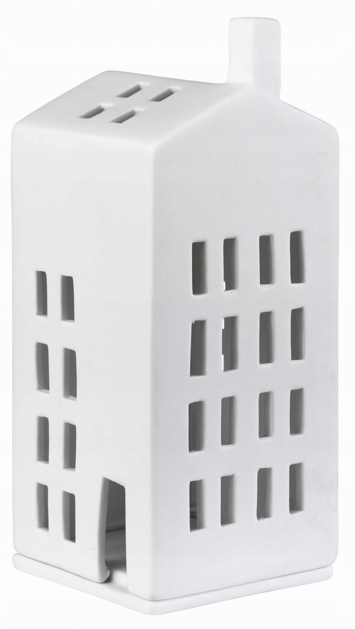 Ліхтар у формі будиночка виготовлено з матової порцеляни з розташованими отворами у вікнах і дверях. Стінки ніжно пропускають світло свічки, випромінюючи тепле світло.