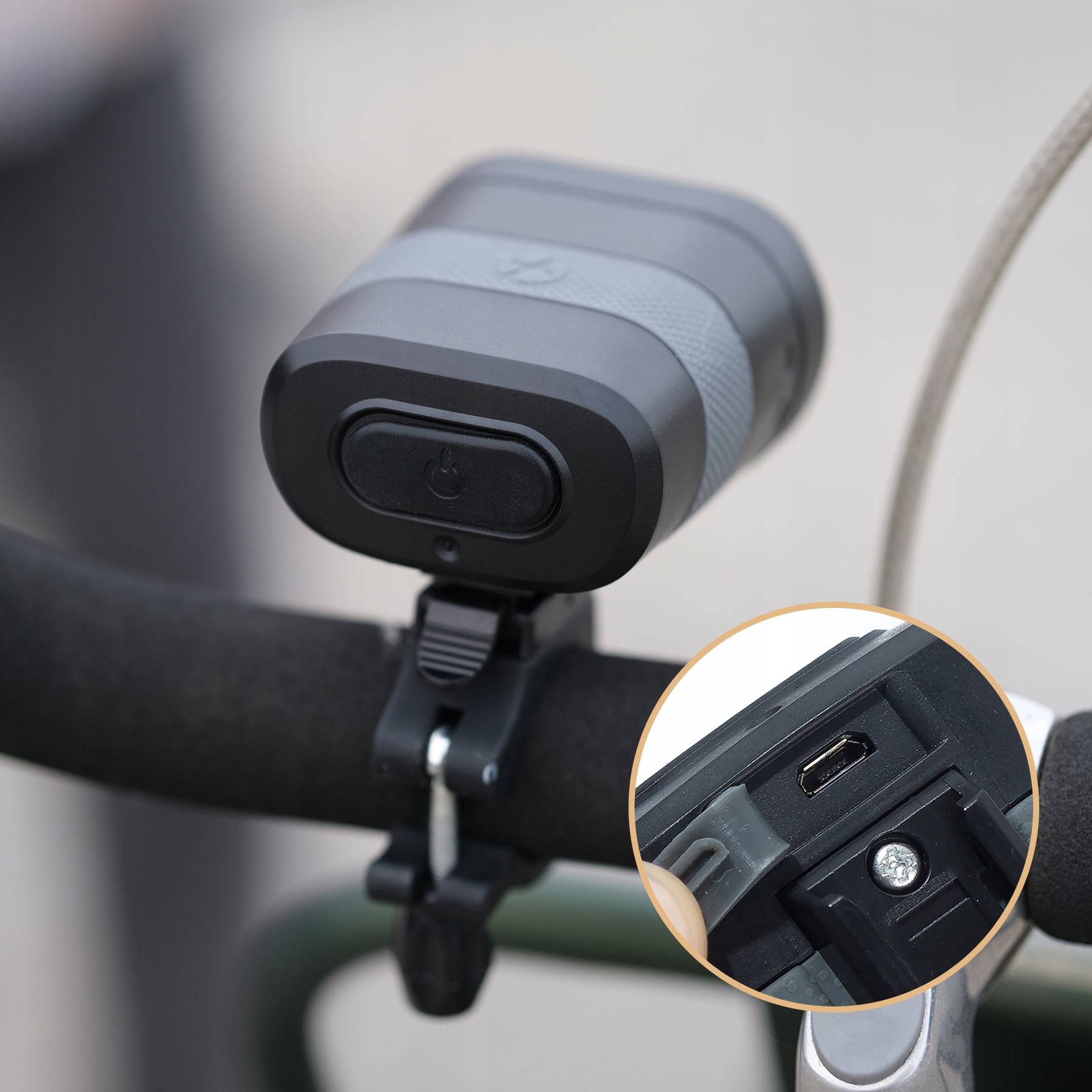 Вбудовані світлодіоди забезпечують ідеальне освітлення за будь-яких умов - завдяки їм їзда на велосипеді в темряві або в умовах обмеженої видимості буде комфортною та безпечною. Лампа легко знімається з велосипеда та заряджається за допомогою кабелю USB. Корпус лампи водонепроникний, тому пристрій можна використовувати навіть під дощем.