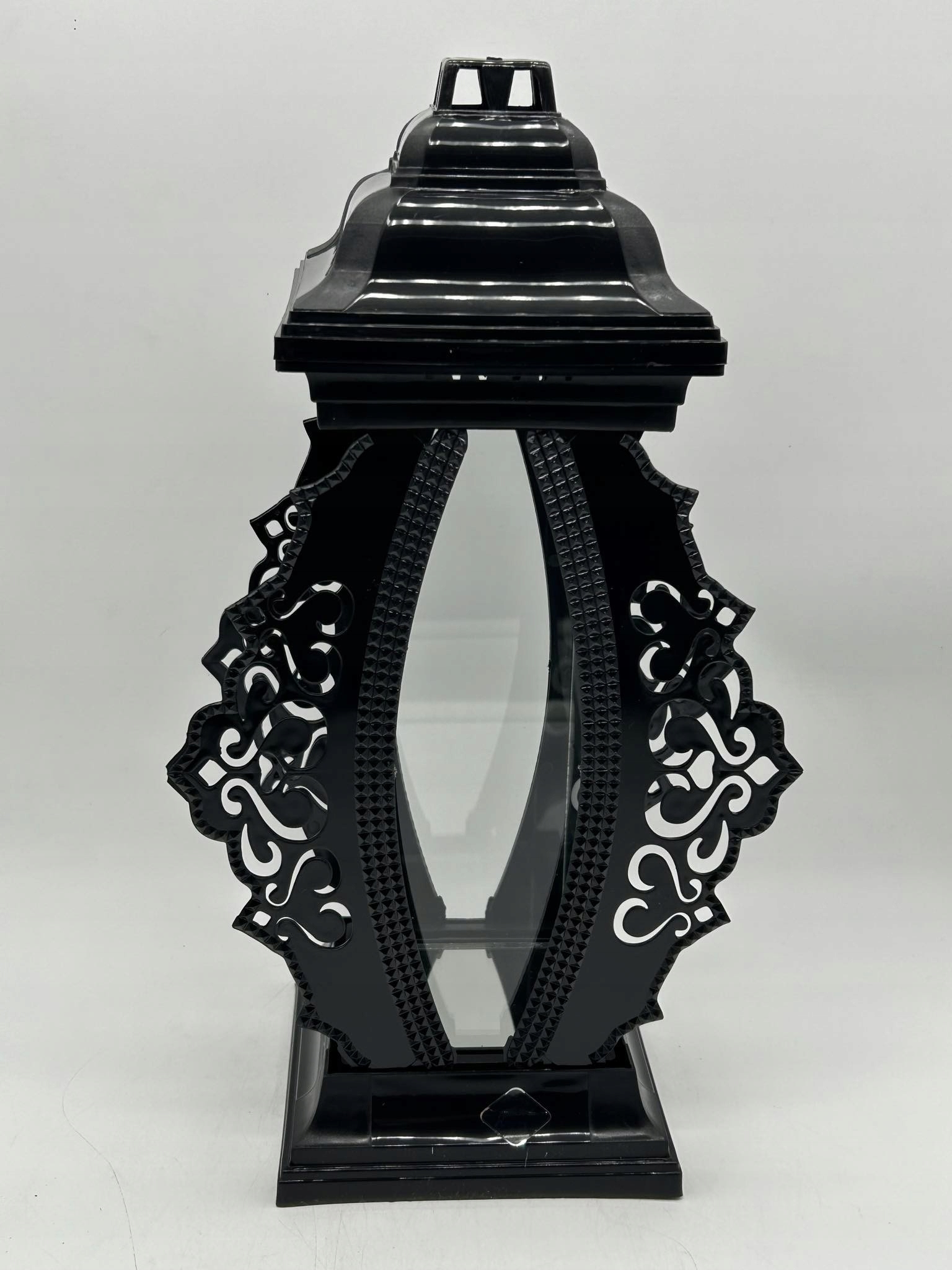 ЧОРНИЙ ПЛАСТИКОВИЙ ЛІХТАР З ПРОЗОРИМ СКЛОМ З КОЖНОГО СТОРОНУ, ПРОСТИЙ ТА ЕЛЕГАНТНИЙ ЛІХТАР