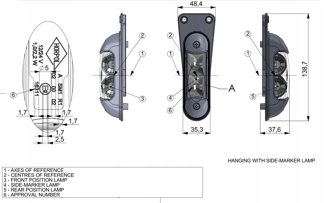 Ліхтар габаритний біло-оранжево-червоний, підвісний