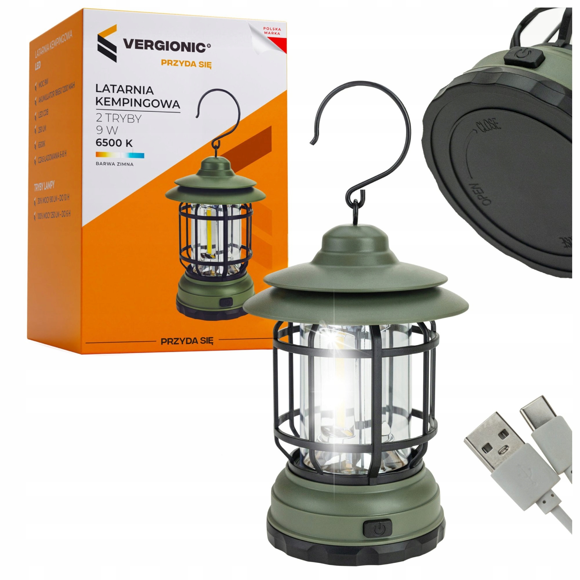 Оснащений сучасними та економічними діодами COB, які дозволяють отримувати високий світловий потік при низькому енергоспоживанні. Лампа досягає яскравості до 250 люмен, завдяки чому ідеально освітлює будь-який простір. Два рівня інтенсивності світла - 30% або 100% потужності дозволяють правильно регулювати яскравість і продовжити час роботи лампи. Ліхтар оснащений трьома стрічками COB, кожна з яких містить 10 світлодіодів. Світлодіоди розподілені рівномірно, освітлюючи простір на 360°.