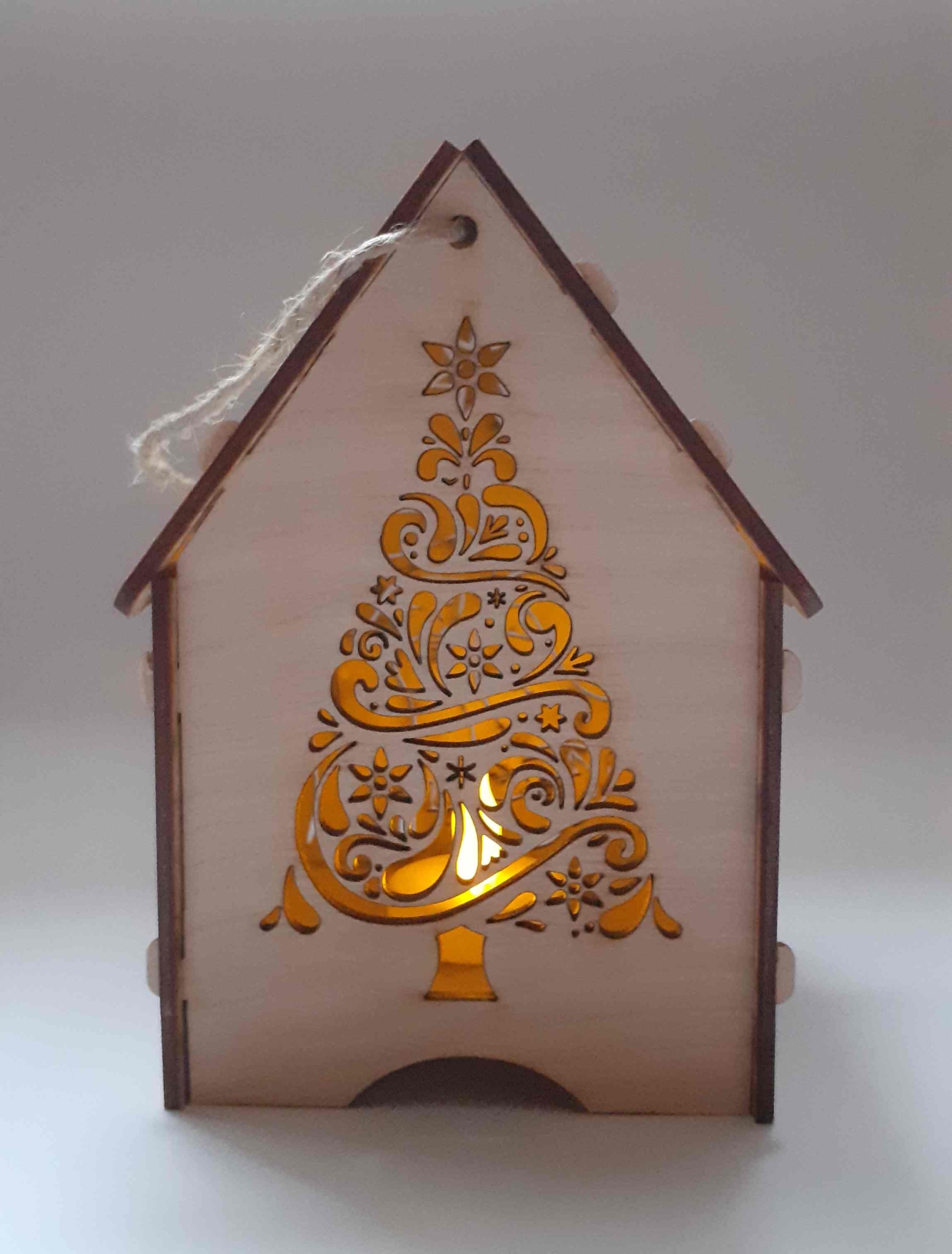Дерев'яний ліхтарик у вишуканому стилі стане невід'ємним елементом передріздвяного періоду та самого Різдва. Тонкість виготовлення поєднується з високоякісним матеріалом, що гарантує довговічність і бездоганний зовнішній вигляд. Фанера вишукано виготовлена. У будинку є лампа, яка ідеально імітує природне світіння свічки (вібрує полум'я).