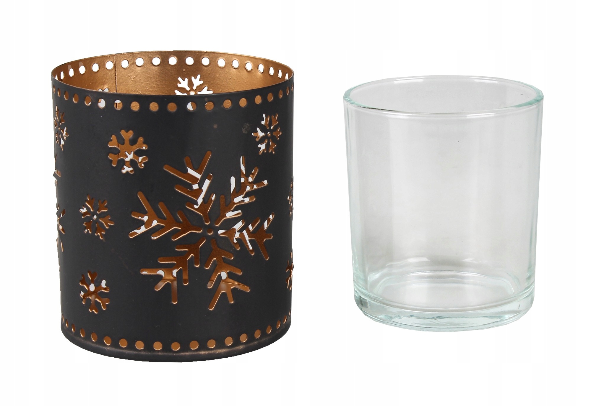 ЛІХТАР МЕТАЛЕВИЙ ЧОРНИЙ ЗІ СКЛЯНОЮ ВСТАВКОЮ - СНІГ 8x8x9 см