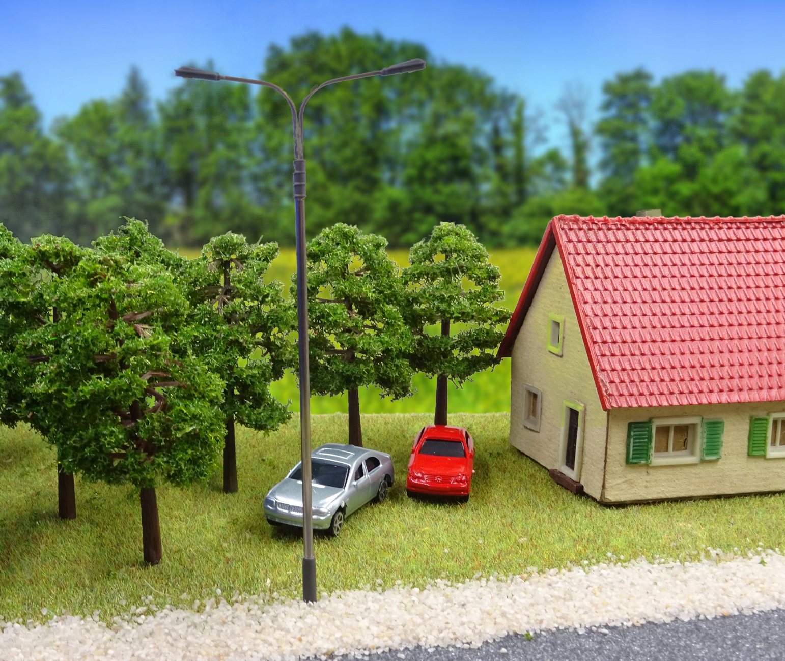 Ліхтар вуличний 80 мм подвійний сталевий LED 3V 1:87