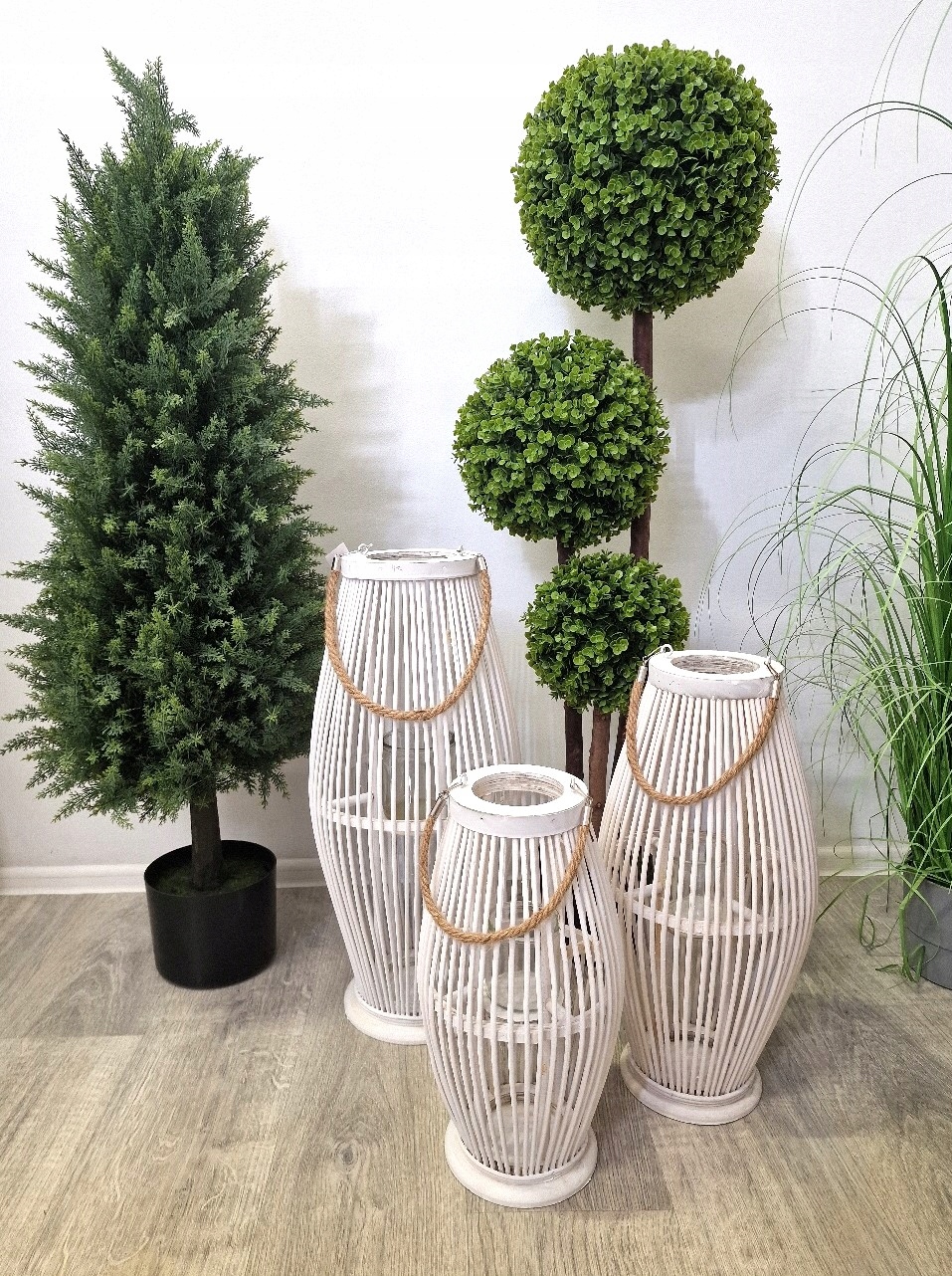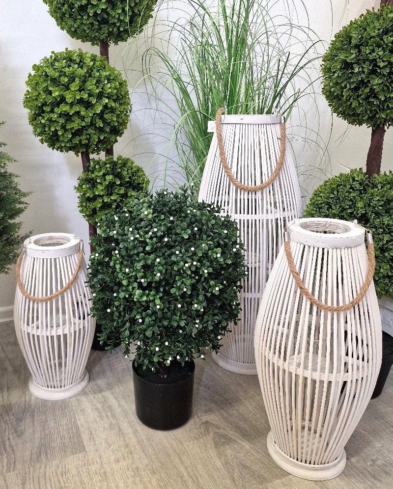 ЛІХТАР З БАМБУКА РОТАНГА 85 СМ БІЛИЙ