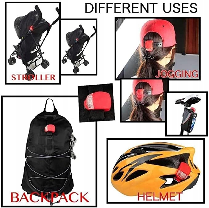 - Широкий діапазон застосування - світлодіодні затискні лампи яскраві та добре помітні, вони водонепроникні, підходять для всіх типів колясок, триколісних велосипедів, колясок тощо, світло також можна прикріпити до керма, рами, сумки та багато іншого, нашийники для собак, бігунів, дітей та багато іншого.