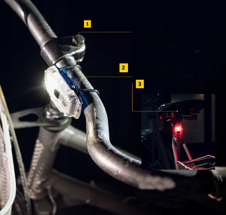 1️⃣ Два надійних силіконових кільця дозволяють закріпити ліхтарик на кермі