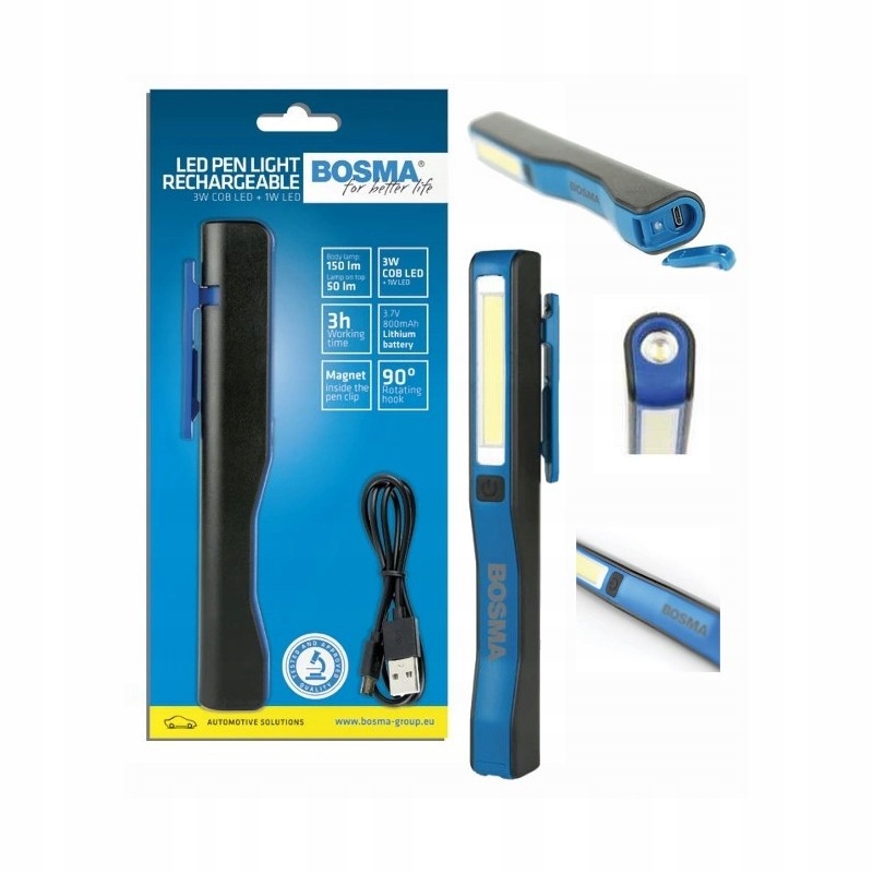 ЛІХТАРИК BOSMA LED 150 Lm, PEN, АККУМУЛЯТОР, USB