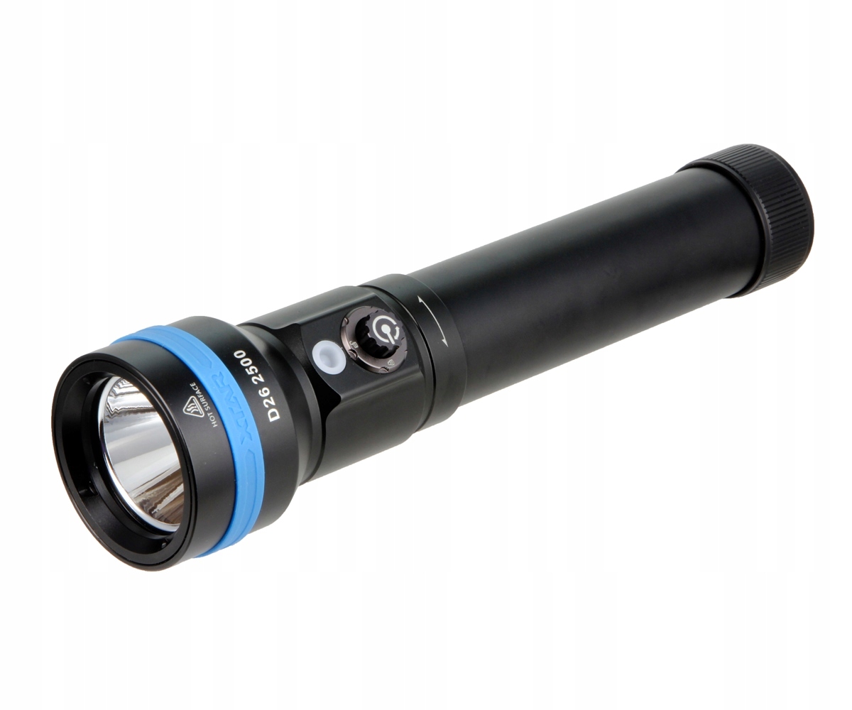 Професійний дайвінг-ліхтарик XTAR D26 2500 використовує найновіший діод Cree XHP50.2 найвищого класу, що забезпечує максимальну потужність 2500 лм. Лампа забезпечує високий індекс передачі кольору CRI і колірну температуру 6000 кельвінів (холодний білий).Чудова функція герметизації забезпечує глибину занурення до 100 метрів. У нас є вибір з кількох режимів роботи: Turbo, High, Medium, Low. Вбудований індикатор живлення інформує вас про стан заряду акумулятора. Розроблений для акумуляторів високої ємності 26650, ліхтарик забезпечує тривалий час занурення. Корпус виготовлений з поверхнево анодованого алюмінію та має перфоровану поверхню зі стійким до стирання анодним покриттям, що забезпечує гарне та надійне захоплення. Для забезпечення хорошого електричного контакту контакти акумулятора виготовлені з антиоксидантних матеріалів і додатково позолочені. Захист від неправильної полярності батареї, регулювання стабілізації світлового потоку, захист від кочення, гачок для шнурка і магнітний вимикач з функціями перемикання і блокування тільки підкреслюють професійний підхід виробника до своєї продукції. Використовуючи для живлення акумулятори 26650 ємністю 5200mAh, ми досягли часу освітлення 2 години в найпотужнішому режимі - 2500 люмен. У комплект з ліхтариком входять: зарядний пристрій XTAR VC2, акумулятори Li-ION 26650, кабель підключення USB і блок живлення USB. Зарядний пристрій XTAR VC2, що входить до комплекту, має великий РК-екран, на якому відображається напруга та струм зарядки, і підтримує елементи 26650. Ліхтарик XTAR D26 2500 ідеально підходить для печер, глибоких або нічних занурень.