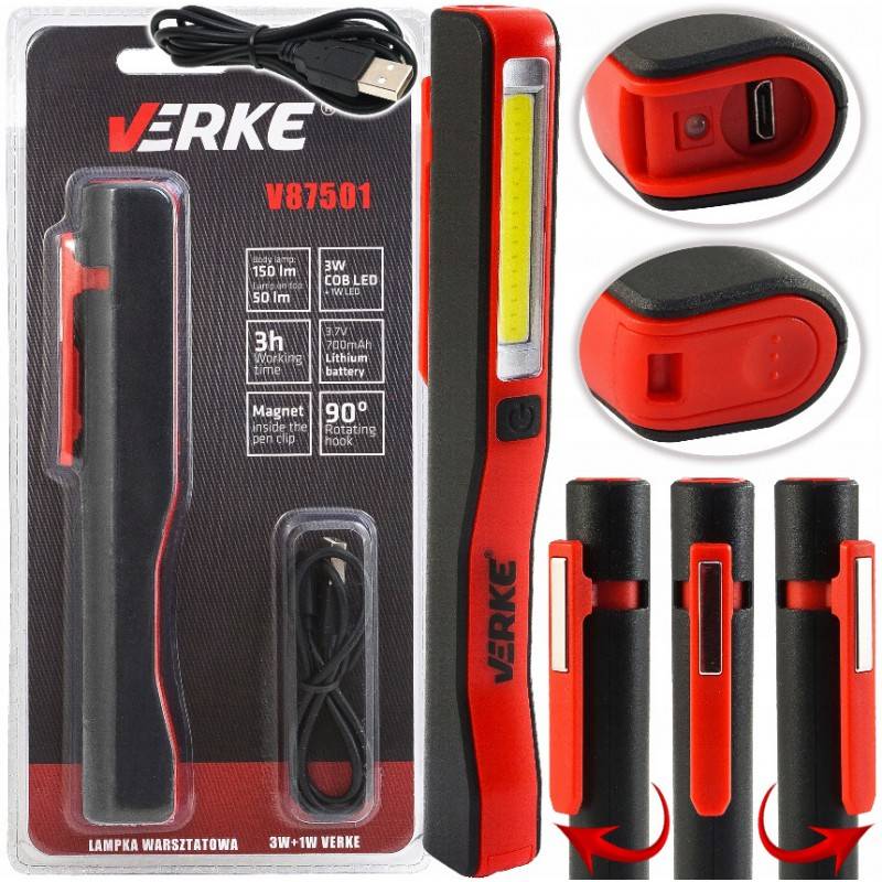 Стійкий світлодіодний ліхтарик із вбудованим літій-іонним акумулятором і USB-зарядним пристроєм від відомої компанії Verke®