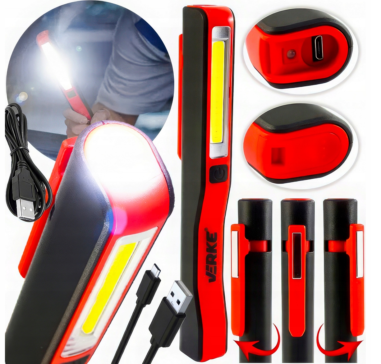 Завдяки використанню технології COB LED (діодна стрічка) ліхтарик дає набагато більше світла порівняно з традиційними та набагато економічніший. Зручний корпус, пристрій надійно лежить у руці. Ємність акумулятора - 700mAh. Поворотний бічний затиск із вбудованим магнітом робить ліхтарик дуже універсальним і зручним у використанні.