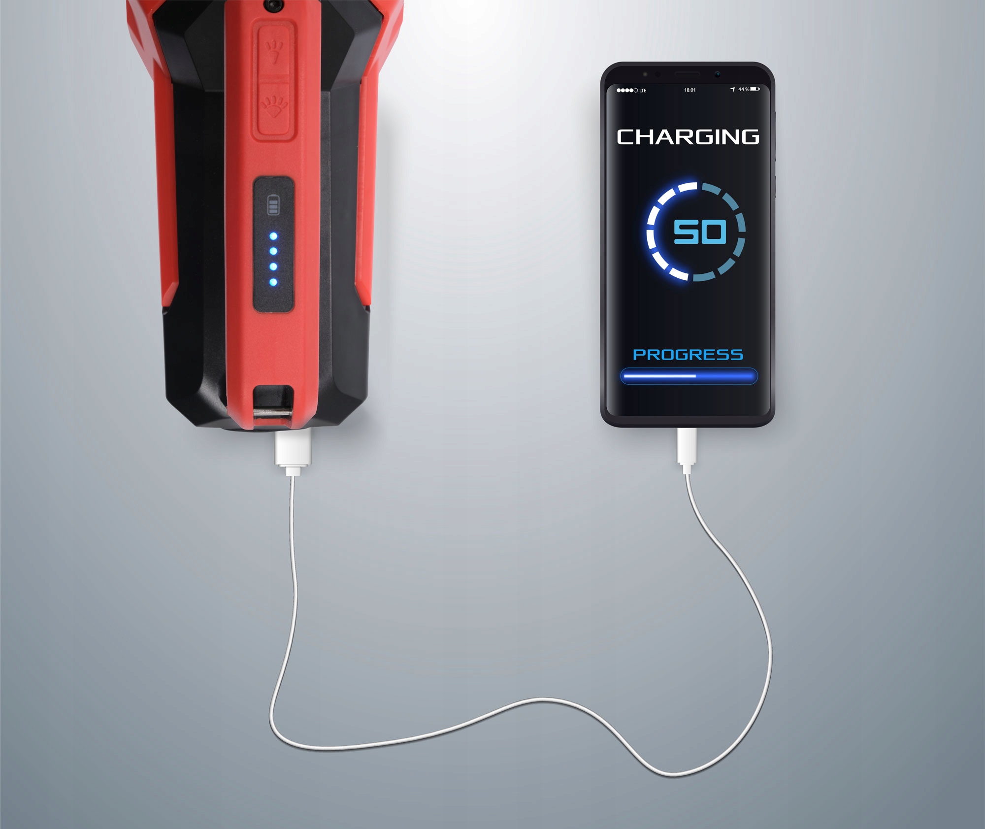 Ліхтарик живиться від вбудованої батареї на 8000 мАг, яку також можна використовувати як зарядний пристрій.