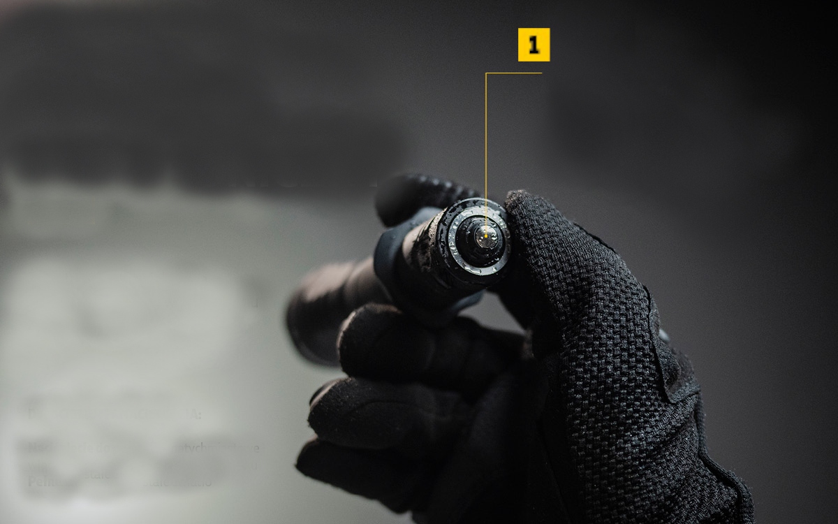 .1️⃣ Опукла кнопка дозволяє легко ввімкнути ліхтарик рукою в рукавичці.