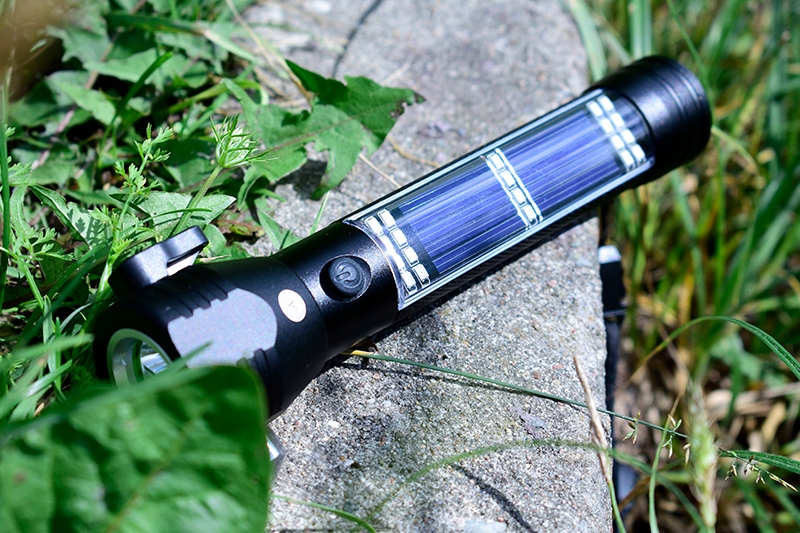 Ємний акумулятор гарантує тривалу роботу, але для збільшення часу роботи на ручці ліхтарика є сонячна панель, яка постійно підзаряджає батарею під час роботи. знаходиться на сонці!