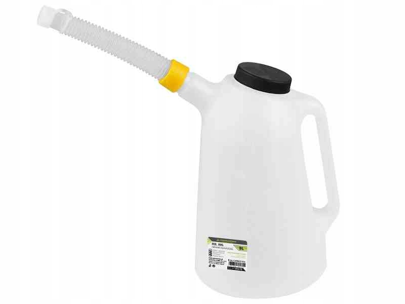 Лійка виготовлена з ПЕ матеріалу, стійкого до дії робочих рідин. Оснащений гнучкою лійкою та кришкою, що закручується. Збоку від лотка є шкала, яка полегшує дозування рідини.