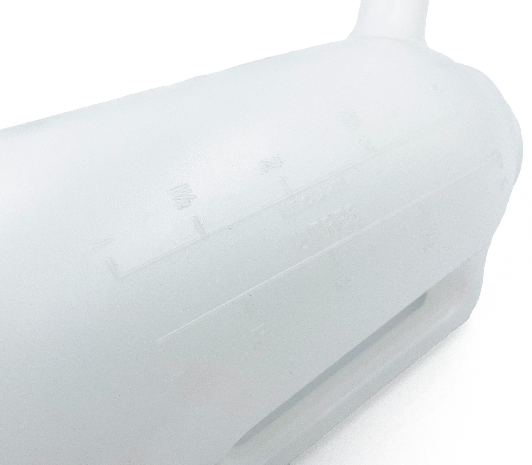 Оснащений гнучкою лійкою, яка полегшує точний налив рідини без проливання.