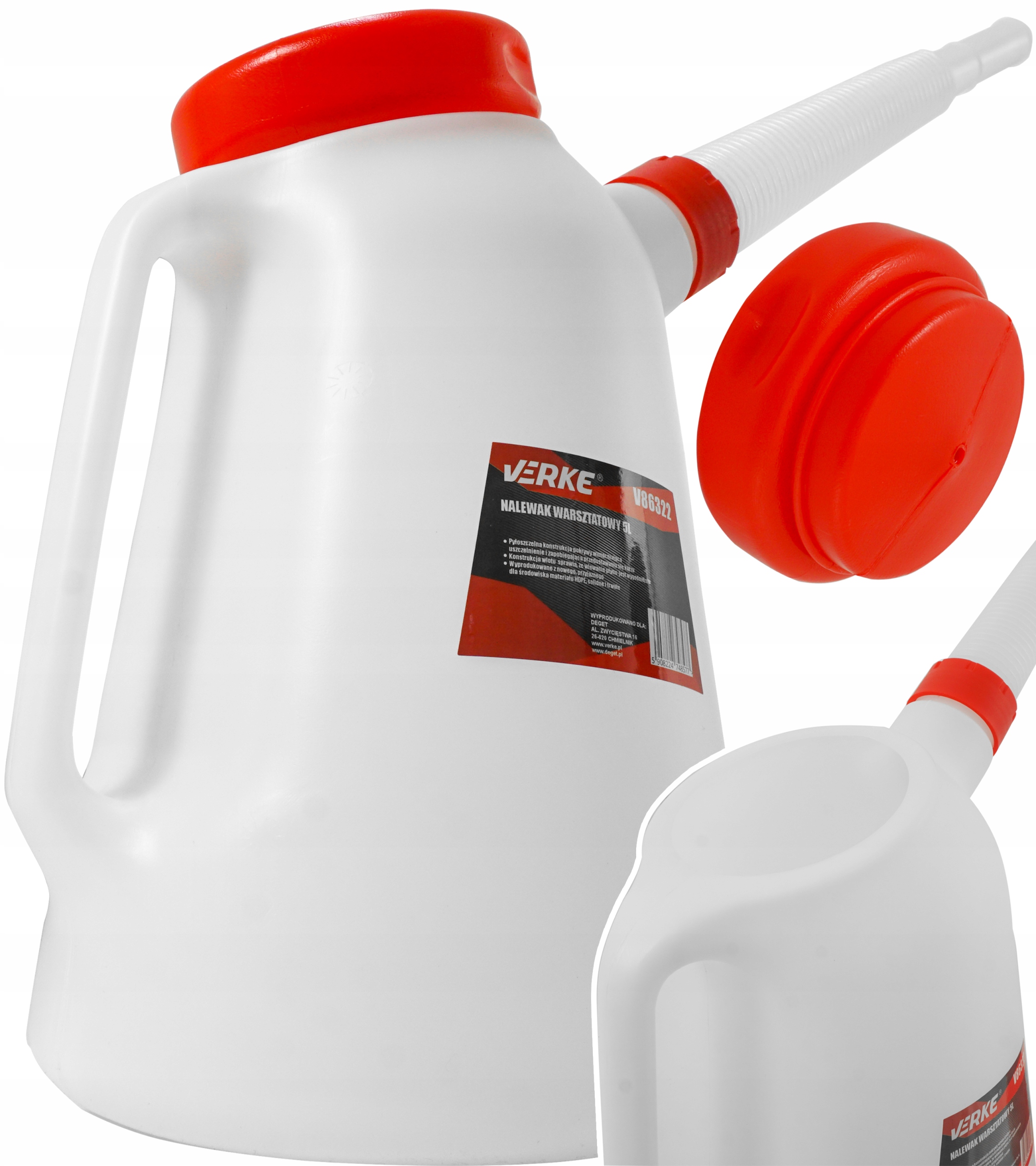 Виготовлена з міцного поліетиленового матеріалу, стійкого до робочих рідин, має практичну гнучку воронку та гвинтовий на кришці.