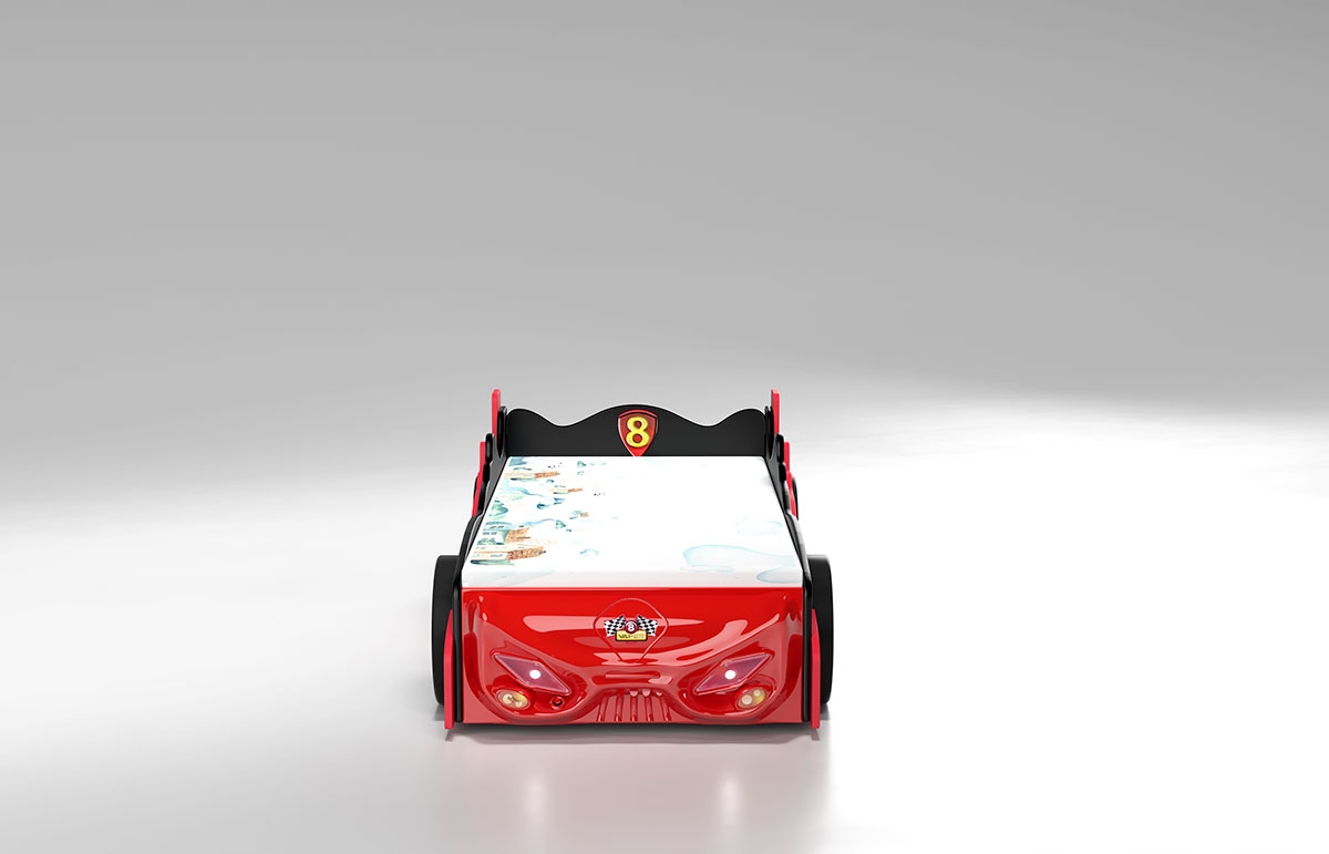 Червоний спортивний автомобіль оснащений реалістичними -видимими колесами, додаючи характер деталей та робочих передніх вогнів, виготовлених із світлодіодів. На швидкості найшвидших спортивних моделей автомобілів дитяче ліжко Vaper візьме кожного малюка в сонний світ фантазії, гарантуючи йому спокійний, заспокійливий сон.