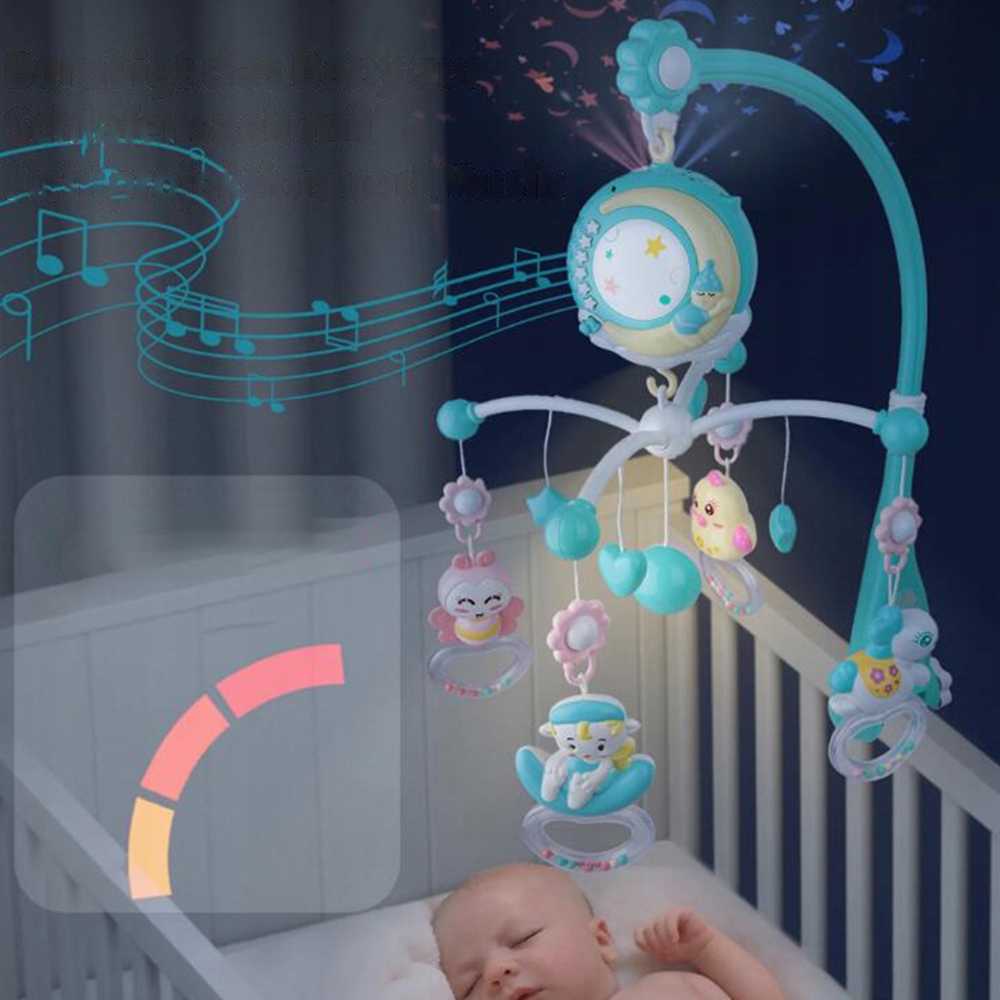 【Світло та музика】Цей музичний мобіль-ліжечко має 3 різні кольори зірок і мультфільмів. Він також може відтворювати 6 колискових пісень, 5 звуків природи, 10 мелодій фісгармонії та 150 пісень. 🌟🎶 Створіть чарівне середовище для сну для вашої дитини.