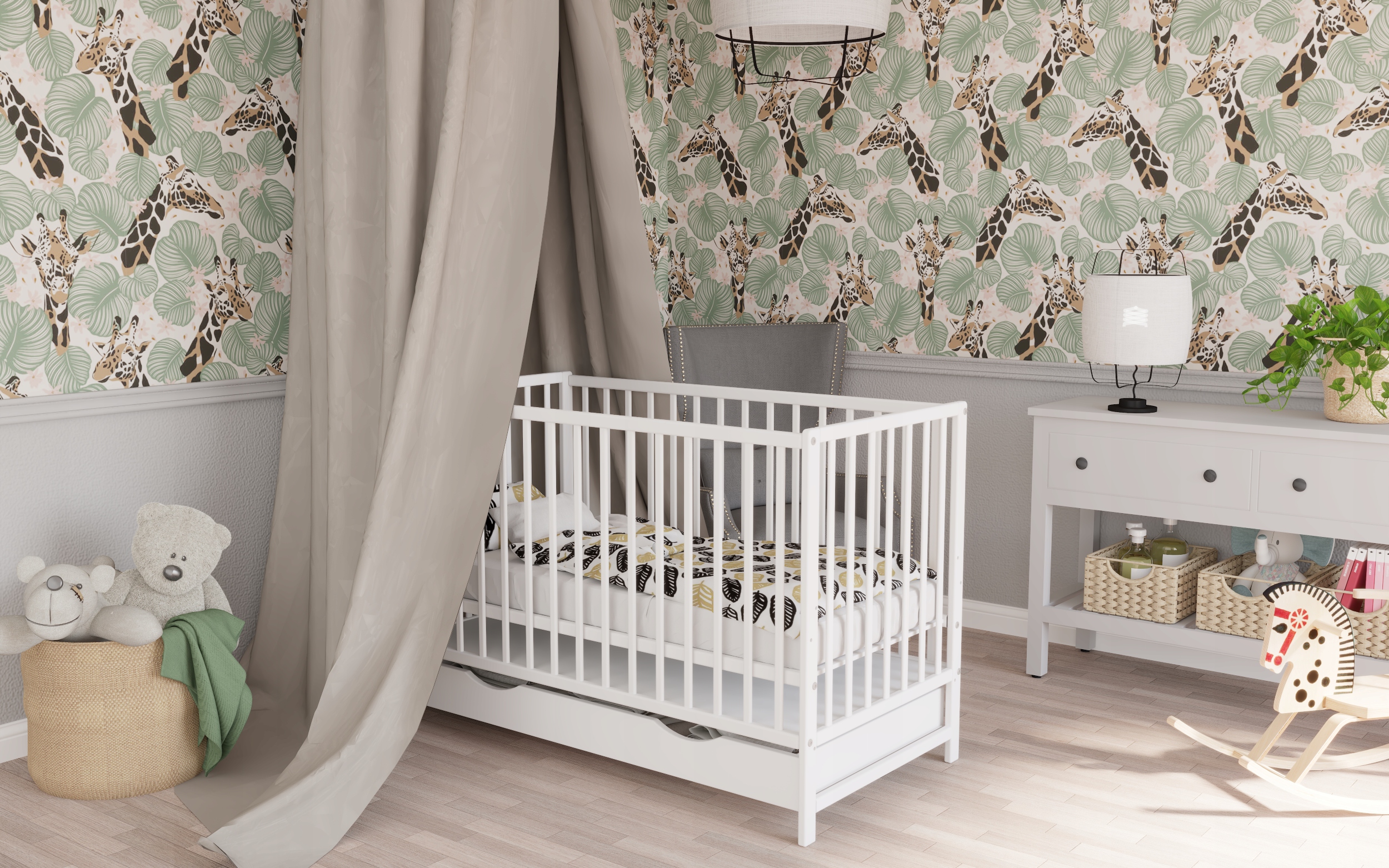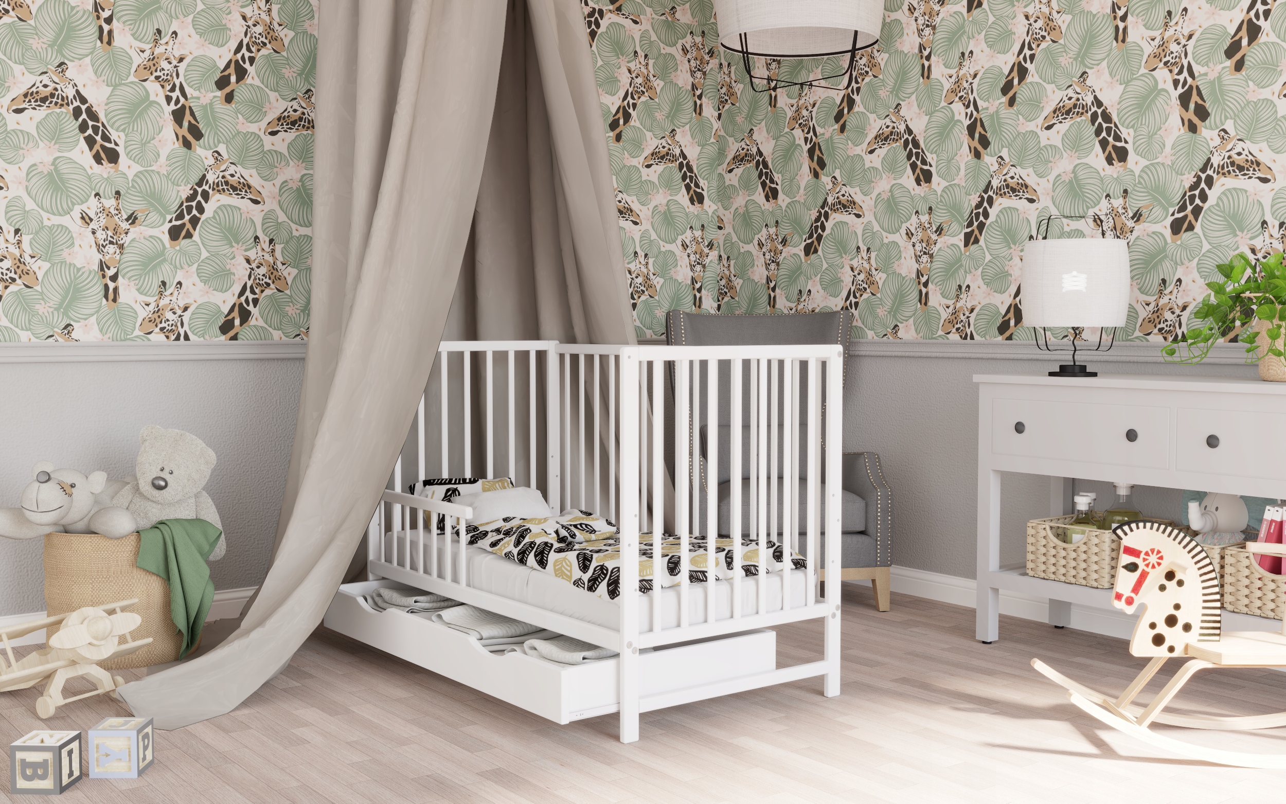 Ліжечко з ящиком + поручні + матрац KG + 2 чохли