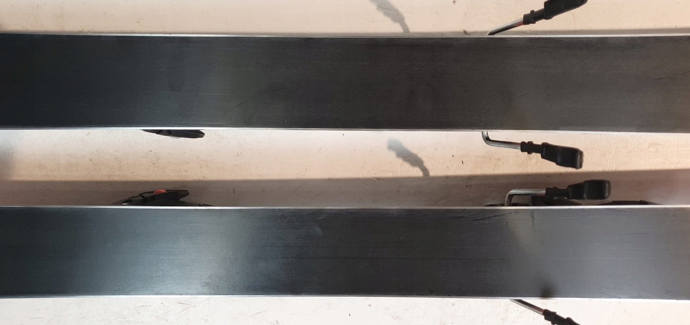 Нижня частина лиж: Основи та канти товсті та рівні по всій довжині, у дуже хорошому стані.