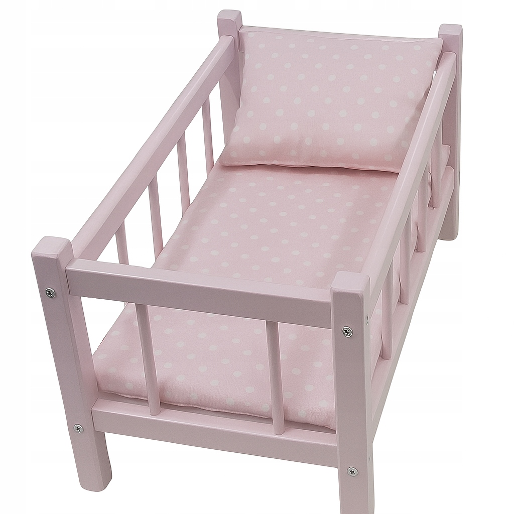 ЛІЖКА ДЕРЕВ'ЯНЕ РОЖЕВЕ + постіль для ляльок 3 шт