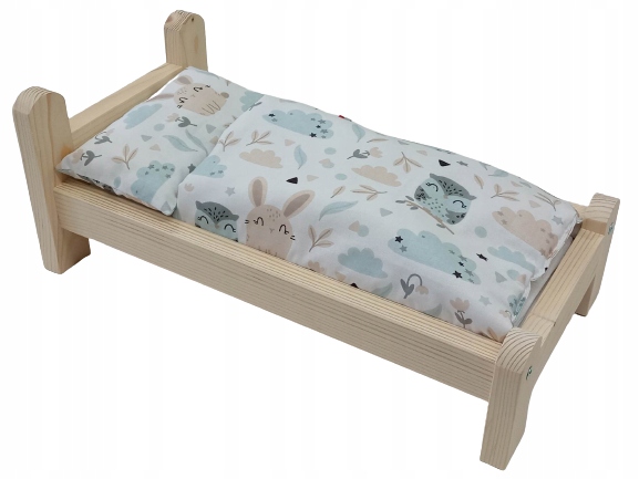 ЛІЖКА ДЛЯ ЛЯЛЬКИ ДЕРЕВ'ЯНЕ ЛІЖКО + ПОСТІЛЬНА БІЛИЗНА