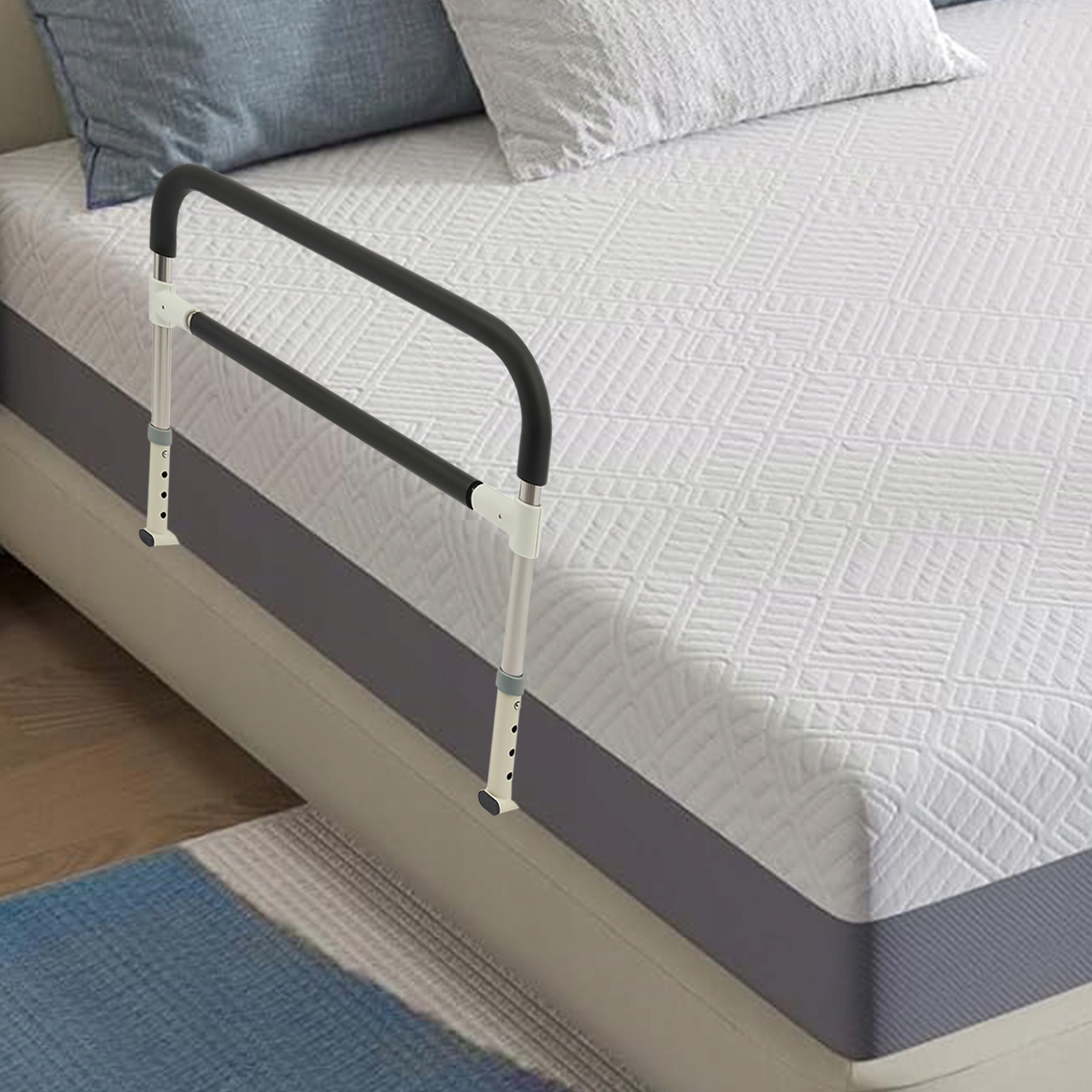 Подвійне використання: 24,61 дюйма розширена довжина не лише допомагає користувачам встати та лежати при менших зусиллях, але й забезпечує масштабний захист, який ефективно захищає людей похилого віку від того, щоб впасти з ліжка протягом ночі. Очищення : Завдяки простому структурі та гладкій поверхні, ви можете легко очистити її вологою тканиною (не включена в набір).