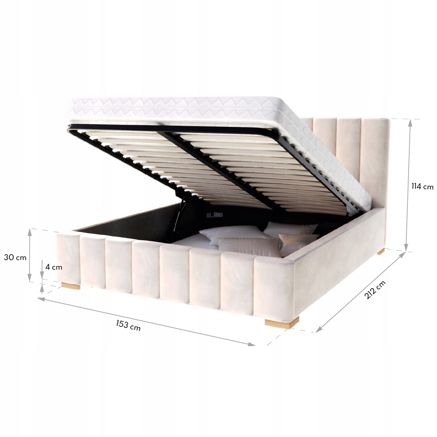 - Зовнішні розміри ліжка: 153 х 212 см